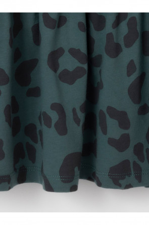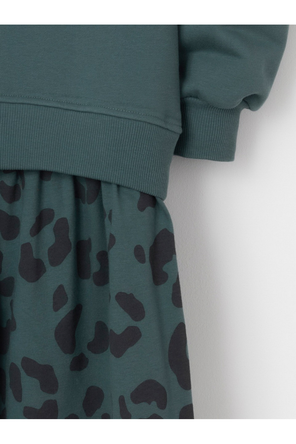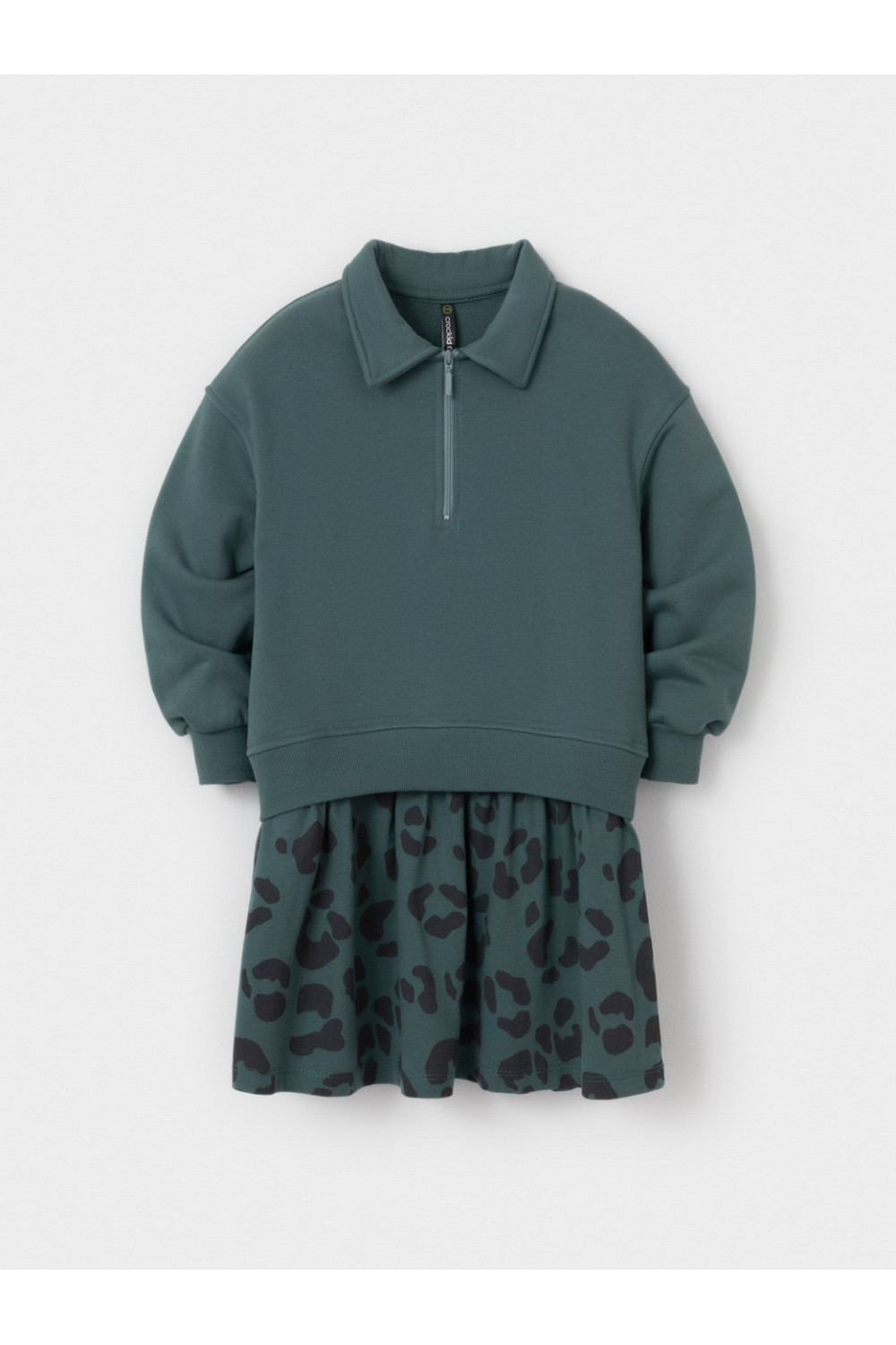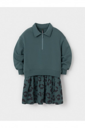 Платье для девочки с длинными рукавами и воротничком. Изготовлено из мягкого петельчатого трикотажа и украшено оборкой из гладкого материала супрем. Спереди застёжка на короткую молнию. Платье сохраняет форму и стойкий цвет после многочисленных стирок и идеально подходит на каждый день. Оригинальный принт выполнен из стойких текстильных гипоаллергенных красителей. Все трикотажные полотна производятся в соответствии с нормами швейцарского сертификата ЭкоТекс.