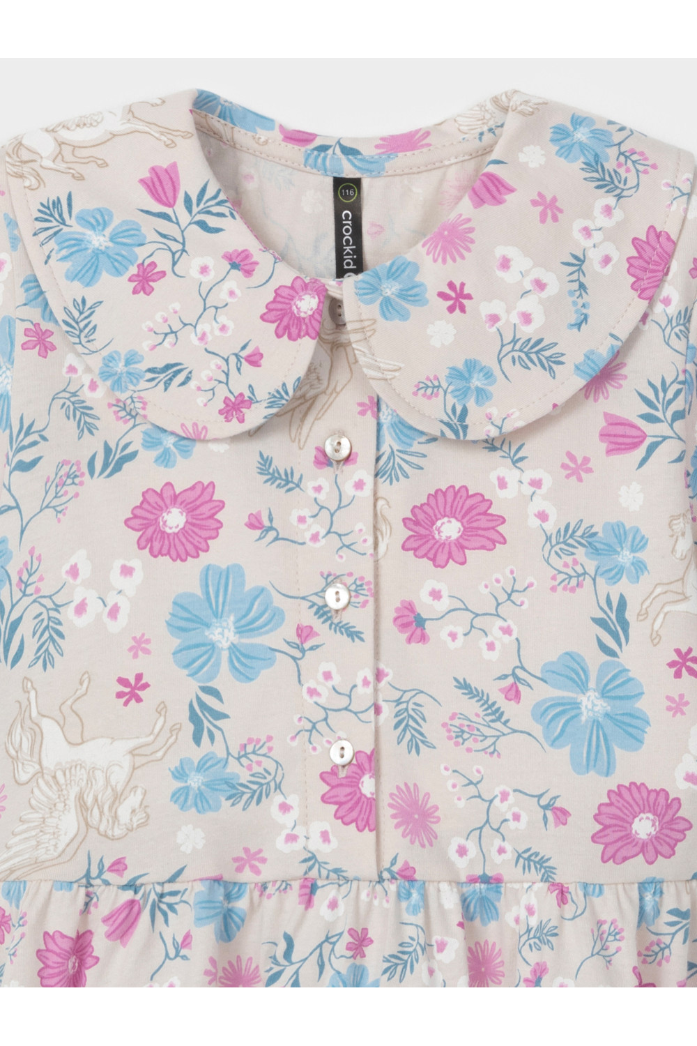 Платье для девочки из высококачественного трикотажного полотна. Застёгивается спереди на пуговицы. Изделие сохраняет форму и стойкий цвет после многочисленных стирок и идеально подходит на каждый день. Все трикотажные полотна производятся в соответствии с нормами швейцарского сертификата ЭкоТекс.