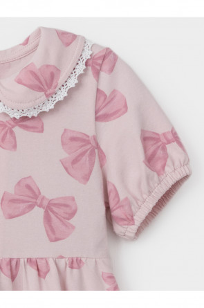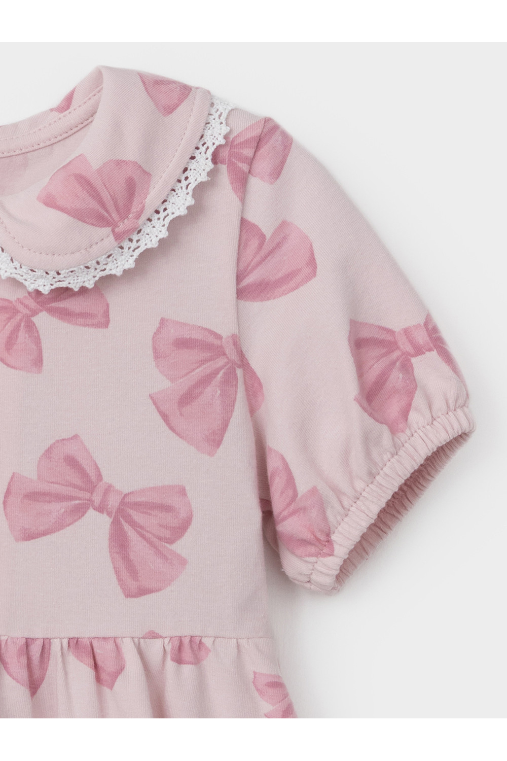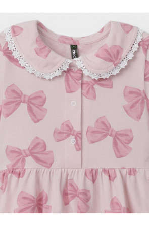Платье с кружевом для девочки из высококачественного трикотажа. Застёгивается на кнопки спереди. Платье сохраняет форму и стойкий цвет после многочисленных стирок и идеально подходит на каждый день. Все трикотажные полотна производятся в соответствии с нормами швейцарского сертификата ЭкоТекс.