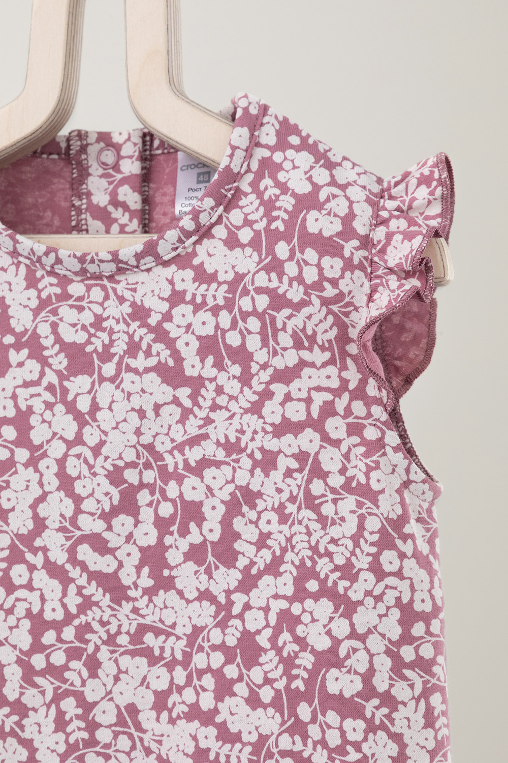 Лёгкий трикотажный песочник из высококачественного хлопка для девочки. Застёгивается на кнопки на спинке и по низу изделия. Верх украшен воздушными крылышками. Оригинальная набивка выполнена из стойких текстильных гипоаллергенных красителей. Изделие сохраняет цвет и форму после многократных стирок.