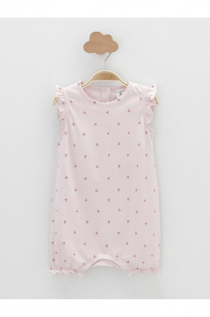Лёгкий трикотажный песочник для девочки из гладкого трикотажа супрем. В составе 100% натуральный хлопок высокого качества. Удобные застёжки на кнопки на спинке и по низу изделия. Верх украшен воздушными крылышками. Оригинальная набивка выполнена из стойких текстильных гипоаллергенных красителей. Изделие сохраняет цвет и форму после многократных стирок.