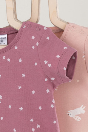 Боди для новорождённых из мягкого эластичного трикотажа, произведённого из натурального хлопка. В упаковке 2 штуки. Застёгиваются на кнопки на плече и по низу изделий. Оригинальная набивка выполнена из стойких гипоаллергенных текстильных красителей. Все трикотажные полотна производятся в соответствии с нормами Швейцарского сертификата ЭкоТекс.