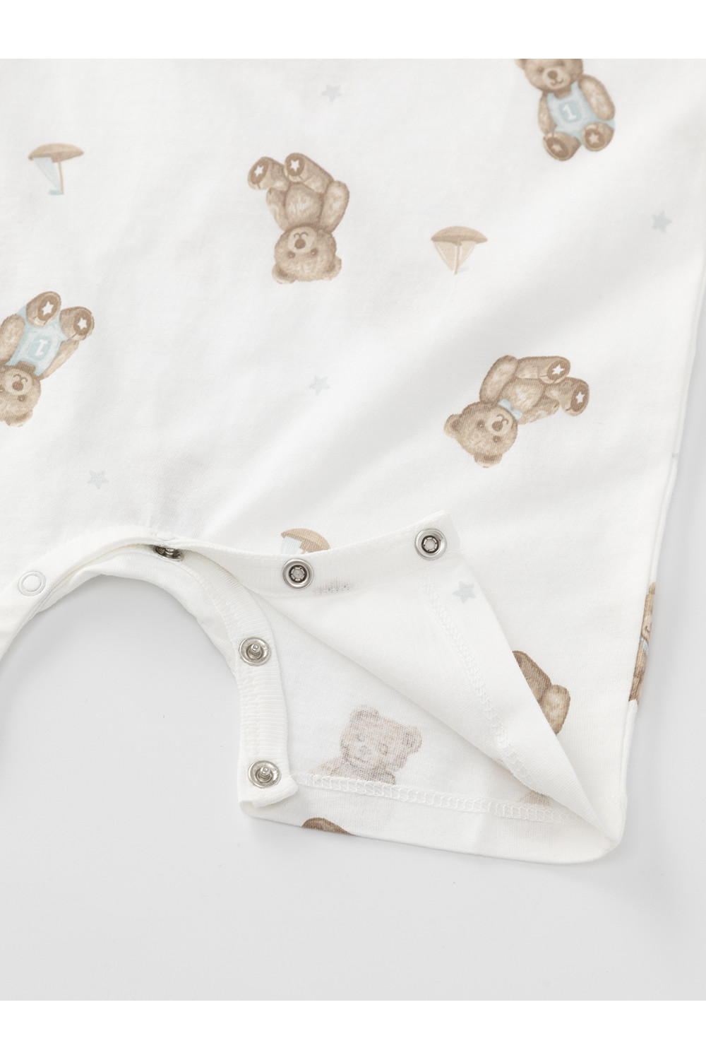 Лёгкий трикотажный песочник для мальчика из гладкого трикотажа супрем. В составе 100% натуральный хлопок высокого качества. Удобные застёжки на кнопки на плече и по низу изделия. Оригинальная набивка выполнена из стойких текстильных гипоаллергенных красителей. Изделие сохраняет цвет и форму после многократных стирок.