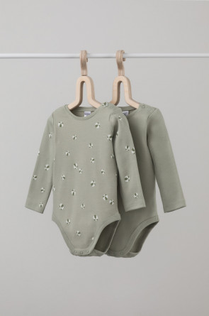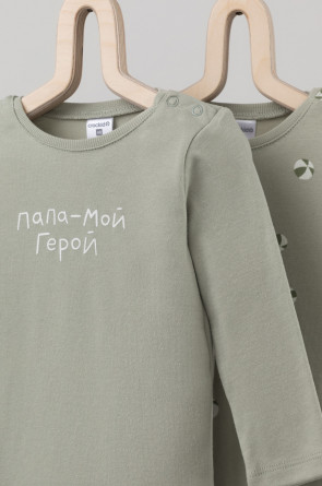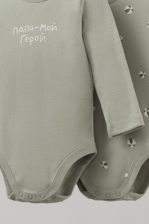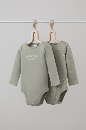 Боди в упаковке 2 шт для новорожденных из мягкого, эластичного трикотажа произведенного из натурального хлопка. Изделие застегивается на кнопки. Оригинальная набивка выполнена из стойких, гипоаллергенных, текстильных красителей. Все трикотажные полотна производятся в соответсвии с нормами Швейцарского сертификата ЭкоТекс.