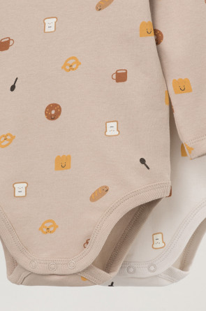 Боди в упаковке 2 шт для новорожденных из мягкого, эластичного трикотажа произведенного из натурального хлопка. Изделие застегивается на кнопки. Оригинальная набивка выполнена из стойких, гипоаллергенных, текстильных красителей. Все трикотажные полотна производятся в соответсвии с нормами Швейцарского сертификата ЭкоТекс.