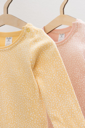 Боди в упаковке 2 шт для новорожденных из мягкого, эластичного трикотажа произведенного из натурального хлопка. Изделие застегивается на кнопки. Оригинальные набивка выполнена из стойких, гипоаллергенных, текстильных красителей. Все трикотажные полотна производятся в соответсвии с нормами Швейцарского сертификата ЭкоТекс.