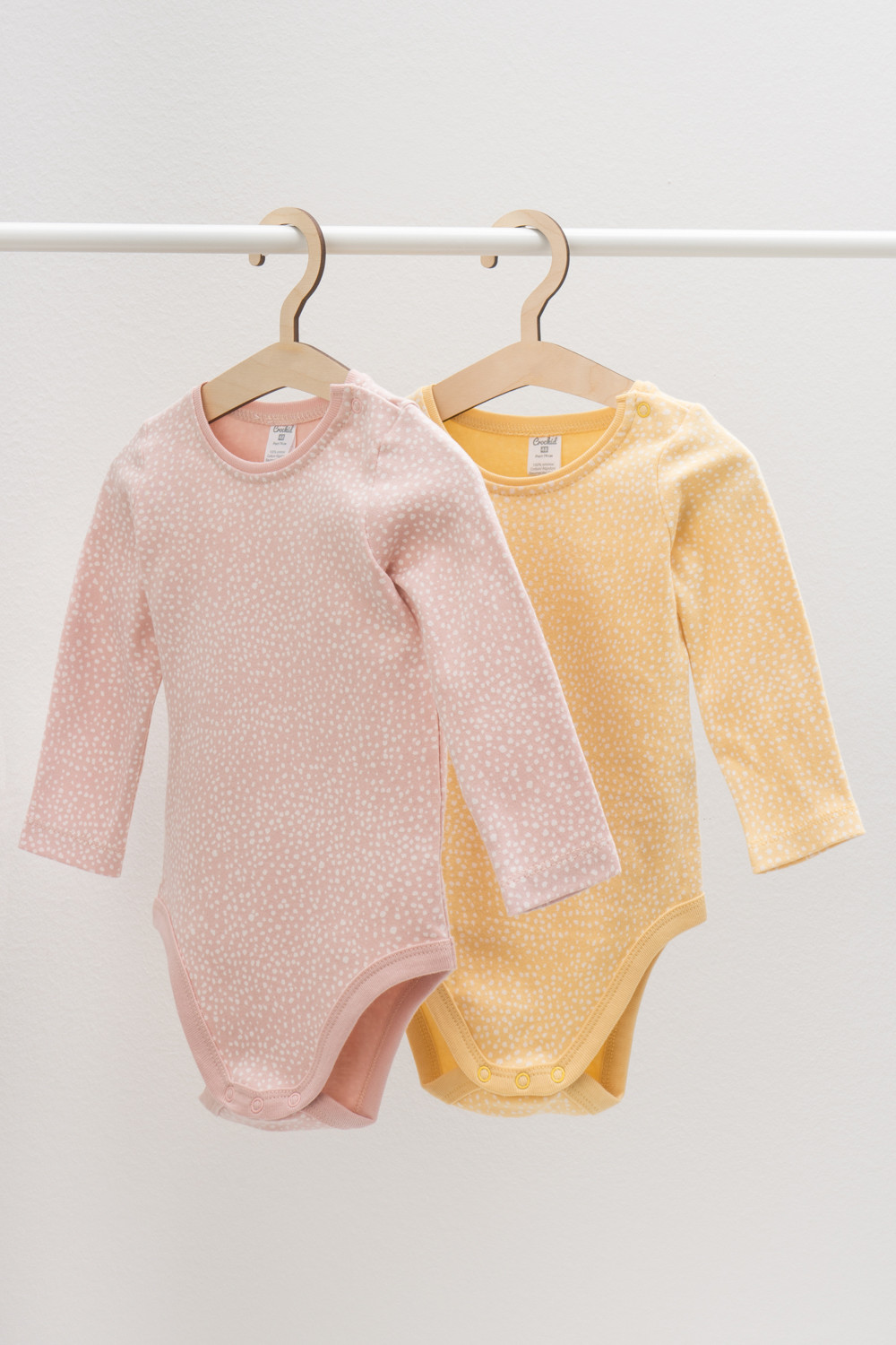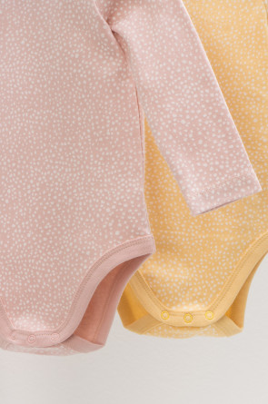 Боди в упаковке 2 шт для новорожденных из мягкого, эластичного трикотажа произведенного из натурального хлопка. Изделие застегивается на кнопки. Оригинальные набивка выполнена из стойких, гипоаллергенных, текстильных красителей. Все трикотажные полотна производятся в соответсвии с нормами Швейцарского сертификата ЭкоТекс.