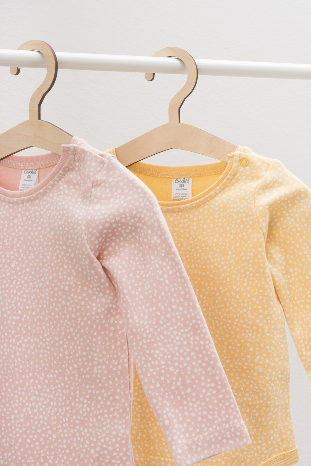 Боди в упаковке 2 шт для новорожденных из мягкого, эластичного трикотажа произведенного из натурального хлопка. Изделие застегивается на кнопки. Оригинальные набивка выполнена из стойких, гипоаллергенных, текстильных красителей. Все трикотажные полотна производятся в соответсвии с нормами Швейцарского сертификата ЭкоТекс.