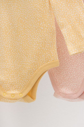 Боди в упаковке 2 шт для новорожденных из мягкого, эластичного трикотажа произведенного из натурального хлопка. Изделие застегивается на кнопки. Оригинальные набивка выполнена из стойких, гипоаллергенных, текстильных красителей. Все трикотажные полотна производятся в соответсвии с нормами Швейцарского сертификата ЭкоТекс.