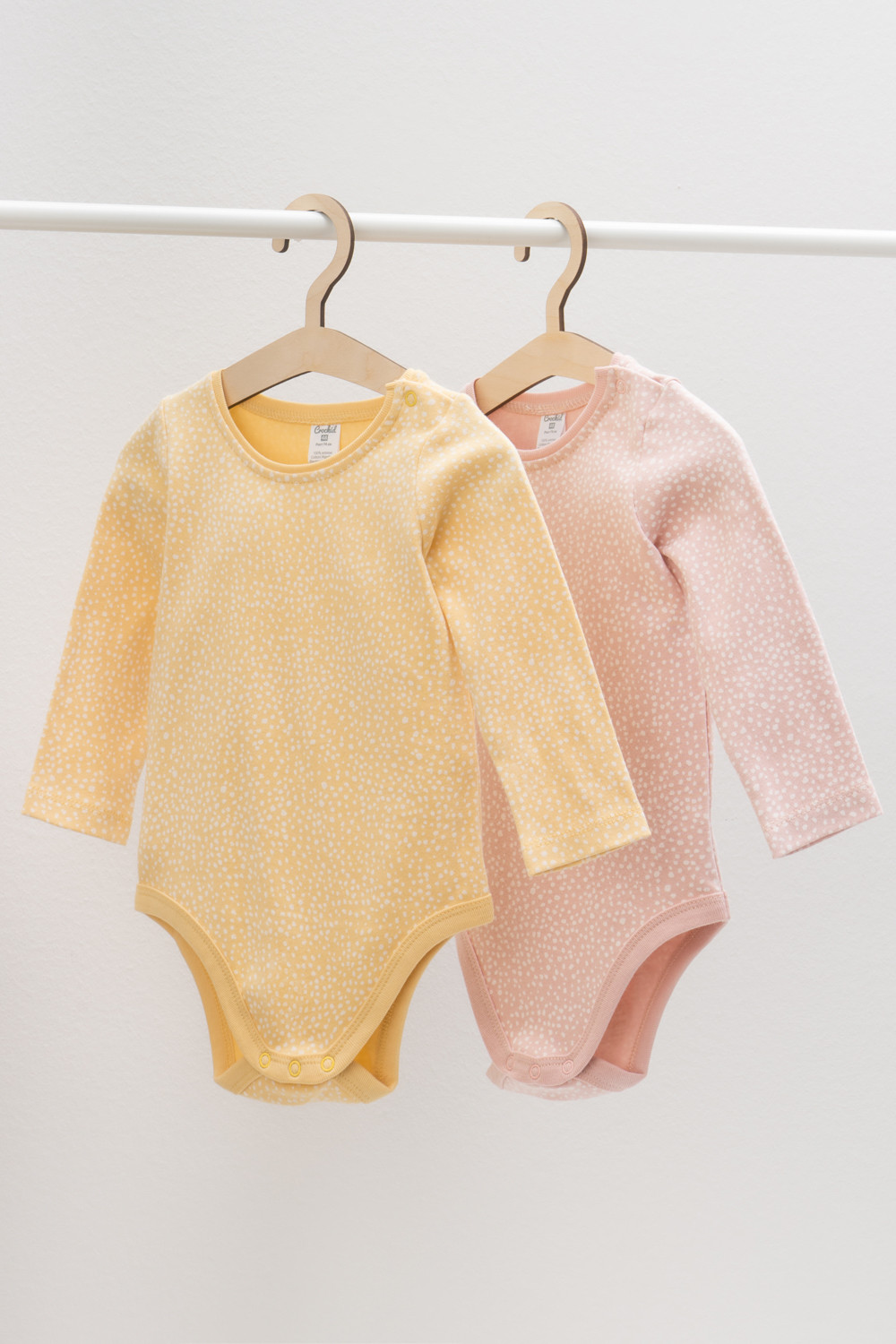 Боди в упаковке 2 шт для новорожденных из мягкого, эластичного трикотажа произведенного из натурального хлопка. Изделие застегивается на кнопки. Оригинальные набивка выполнена из стойких, гипоаллергенных, текстильных красителей. Все трикотажные полотна производятся в соответсвии с нормами Швейцарского сертификата ЭкоТекс.