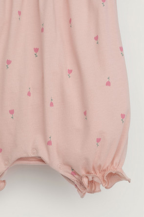 Лёгкий трикотажный песочник из высококачественного хлопка для девочки. Застёгивается на кнопки на спинке и по низу изделия. Оригинальная набивка выполнена из стойких текстильных гипоаллергенных красителей. Изделие сохраняет цвет и форму после многократных стирок.