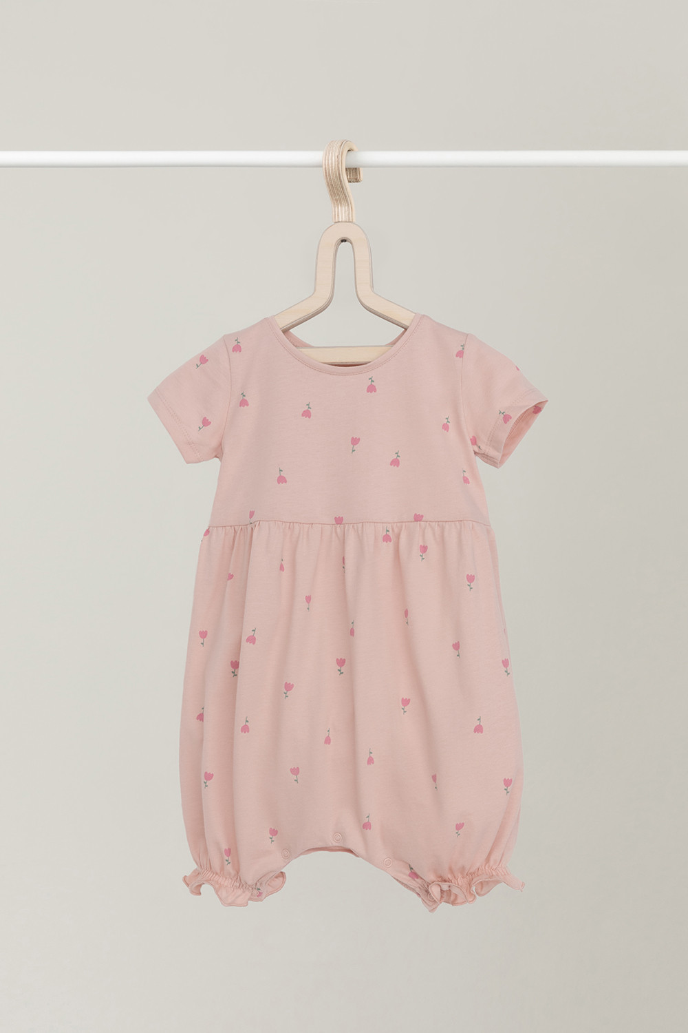Лёгкий трикотажный песочник из высококачественного хлопка для девочки. Застёгивается на кнопки на спинке и по низу изделия. Оригинальная набивка выполнена из стойких текстильных гипоаллергенных красителей. Изделие сохраняет цвет и форму после многократных стирок.
