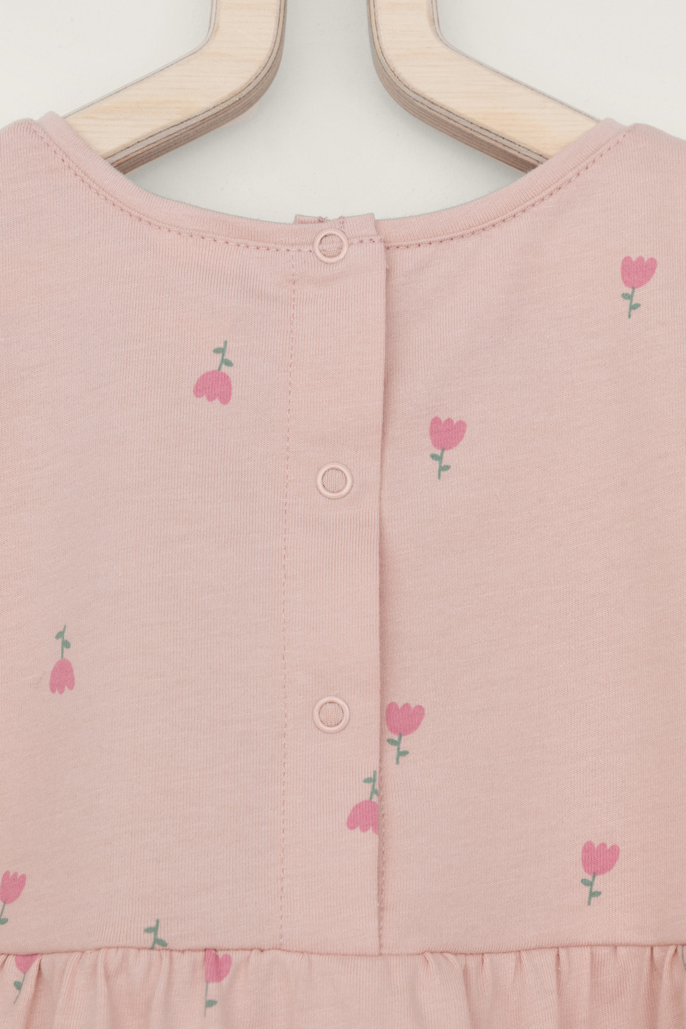 Лёгкий трикотажный песочник из высококачественного хлопка для девочки. Застёгивается на кнопки на спинке и по низу изделия. Оригинальная набивка выполнена из стойких текстильных гипоаллергенных красителей. Изделие сохраняет цвет и форму после многократных стирок.