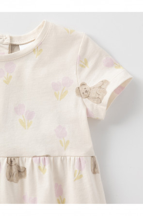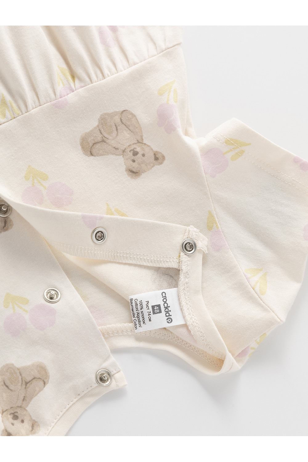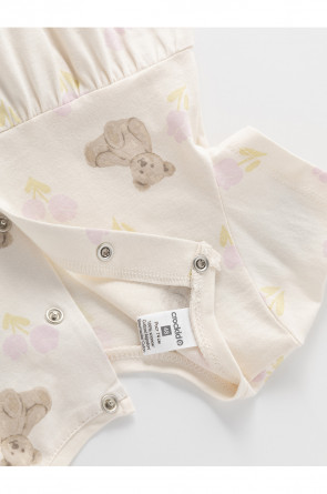Лёгкий трикотажный песочник для девочки из гладкого трикотажа супрем. В составе 100% натуральный хлопок высокого качества. Удобные застёжки на кнопки на спинке и по низу изделия. Оригинальная набивка выполнена из стойких текстильных гипоаллергенных красителей. Изделие сохраняет цвет и форму после многократных стирок.