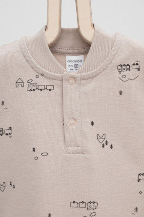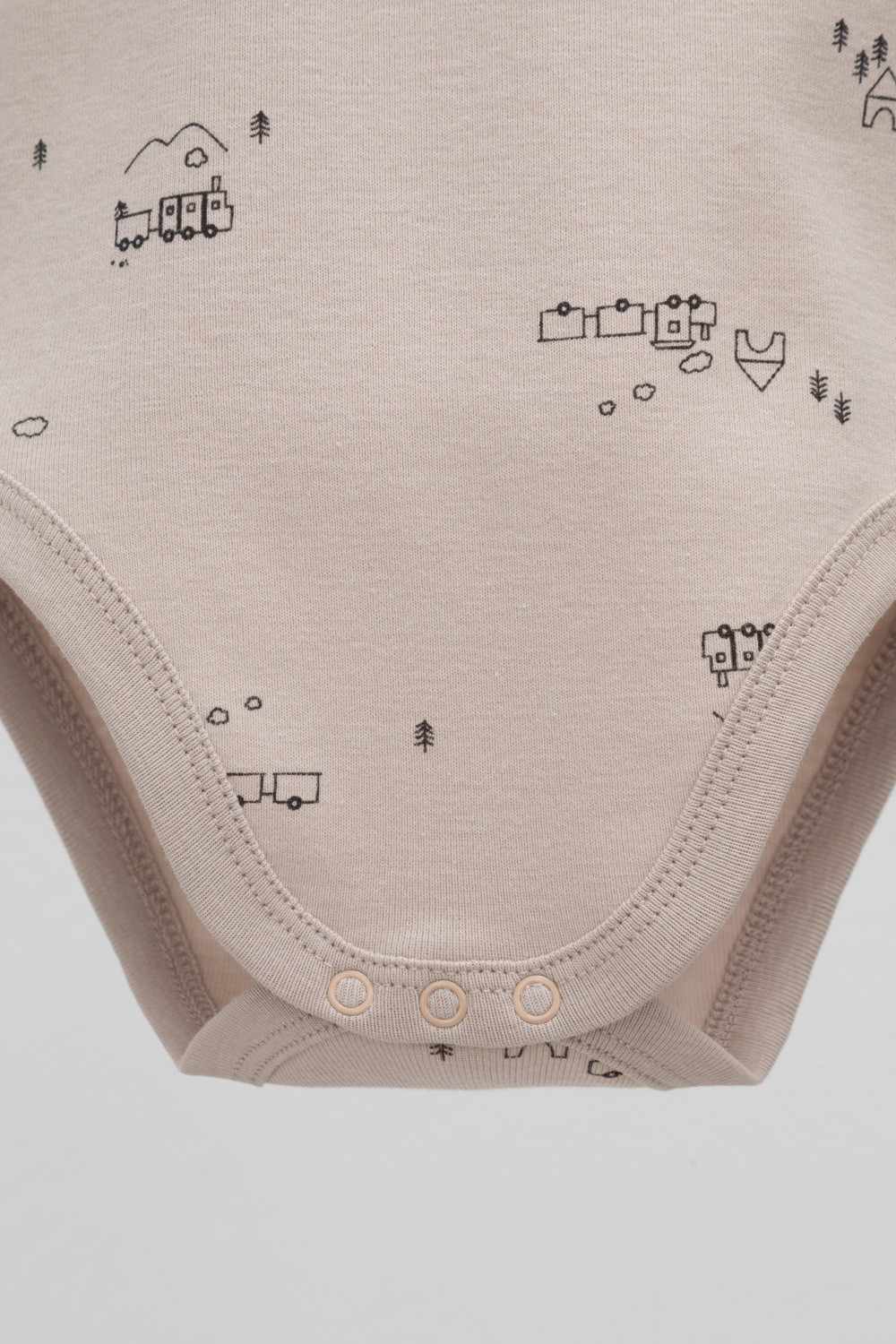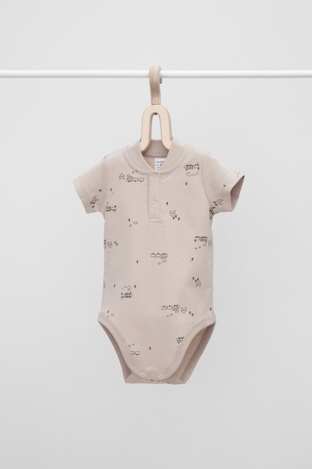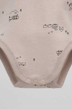 Боди для новорождённых из мягкого, эластичного трикотажа, произведённого из натурального хлопка. Изделие застёгивается на кнопки спереди и в области паха. Все трикотажные полотна производятся в соответствии с нормами Швейцарского сертификата ЭкоТекс.
