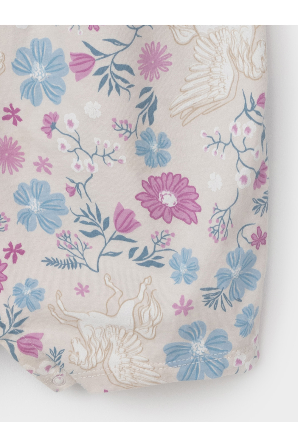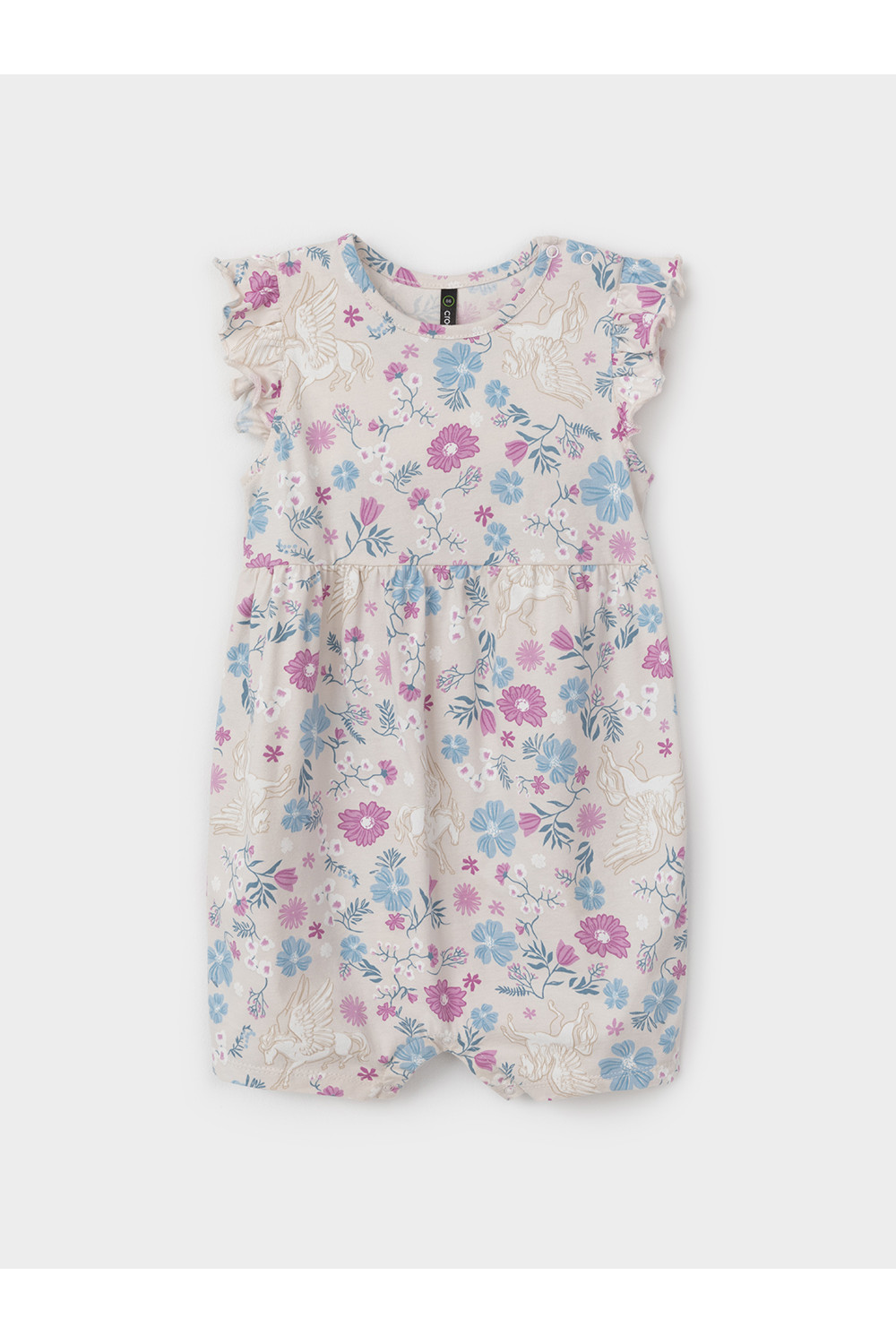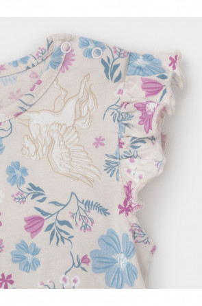 Песочник для девочки из гладкого хлопкового трикотажа. Застёгивается на кнопки по низу и на плече. Изделие сохраняет цвет и форму после многократных стирок. Все трикотажные полотна производятся в соответствии с нормами швейцарского сертификата ЭкоТекс.