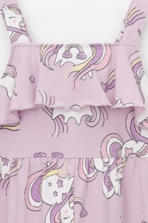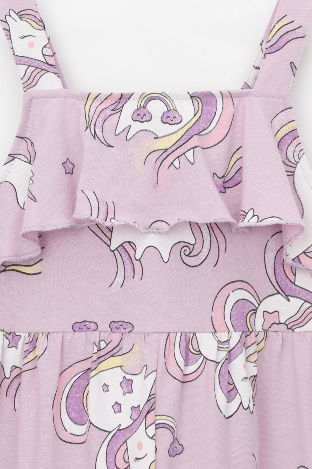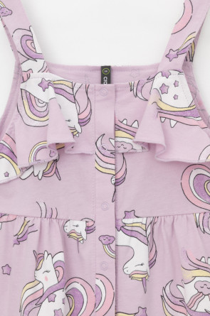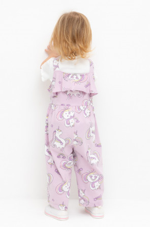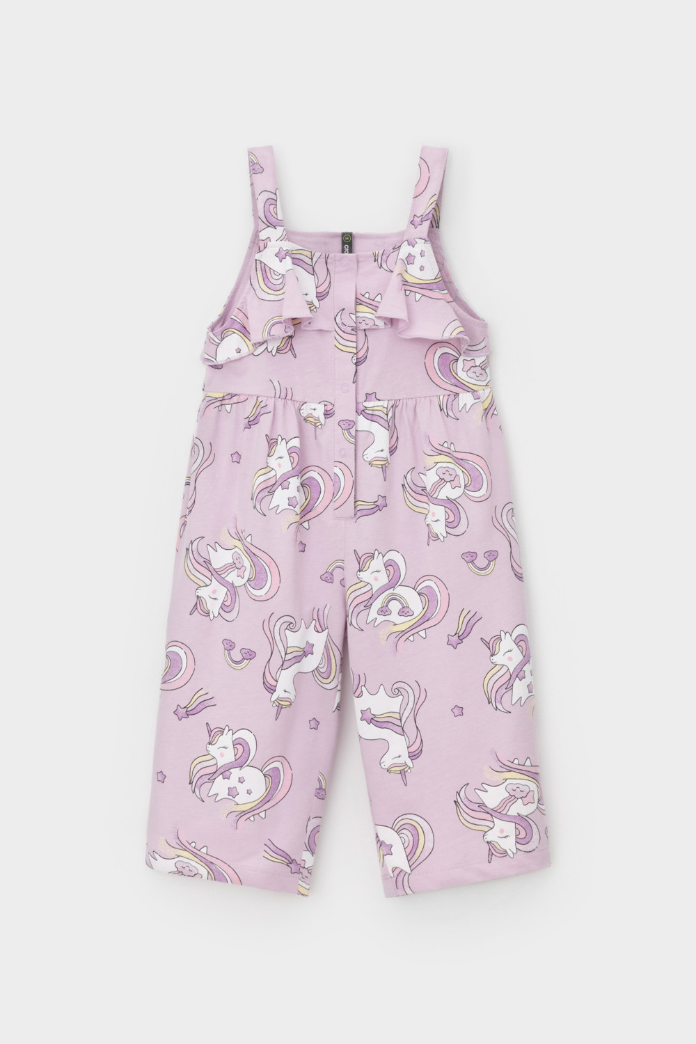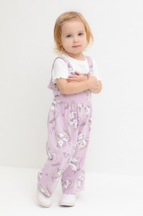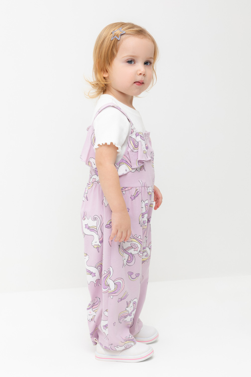 Комбинезон на лямках для девочки. Удобная застежка на кнопки спереди. Оригинальная набивка выполнена из стойких текстильных гипоаллергенных красителей. Изделие сохраняет цвет и форму после многократных стирок.