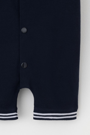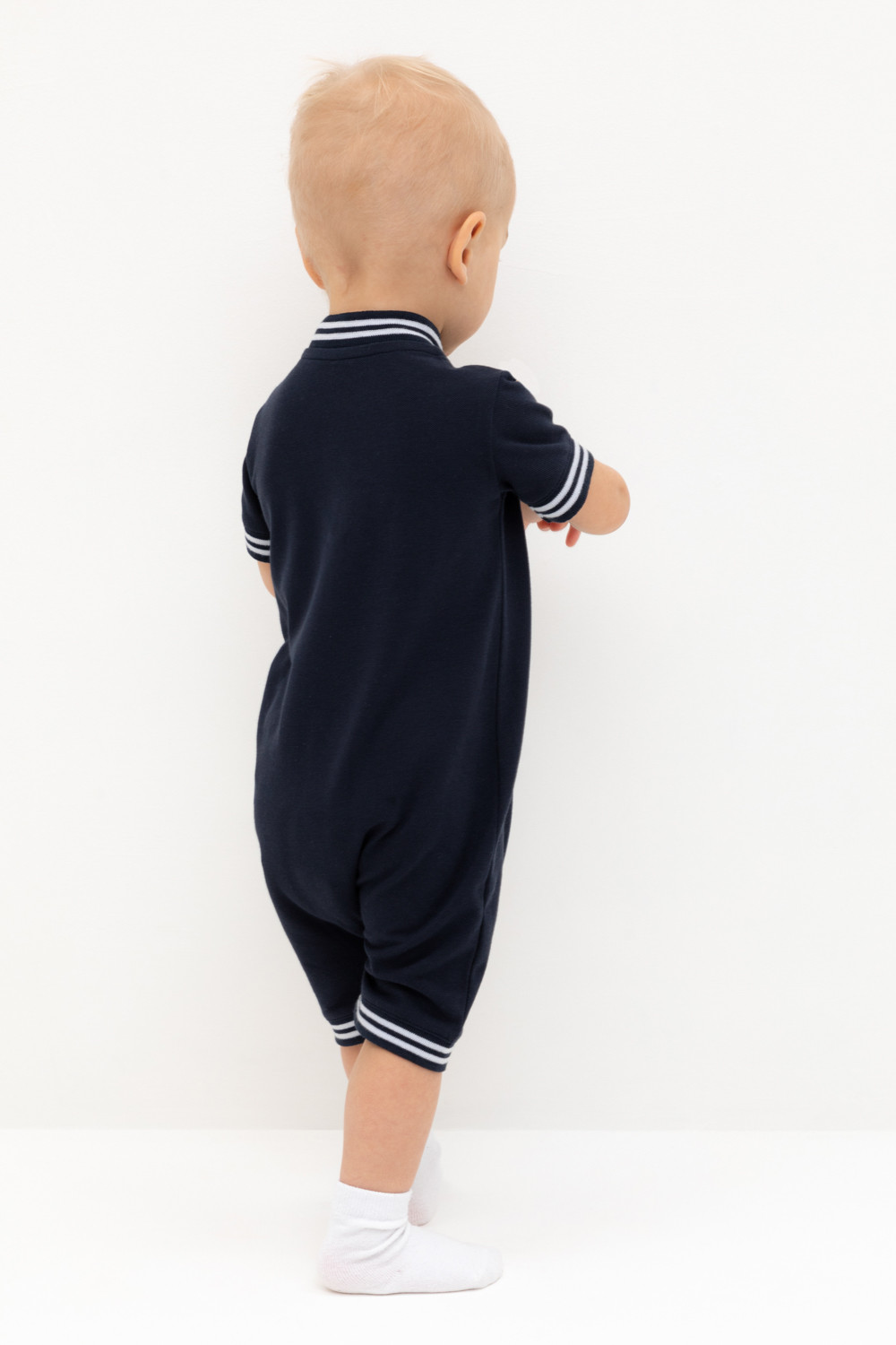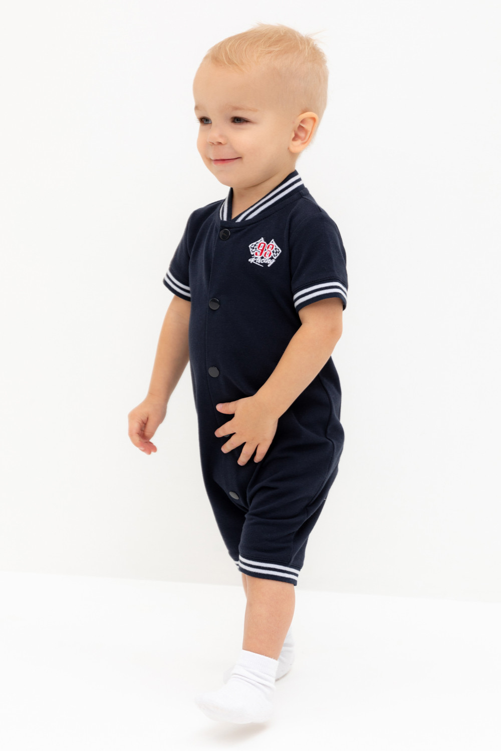 Легкий трикотажный песочник для мальчика из высококачественного хлопка. Застёгивается спереди на кнопки. Украшен вышивкой на груди. Изделие сохраняет цвет и форму после многократных стирок.