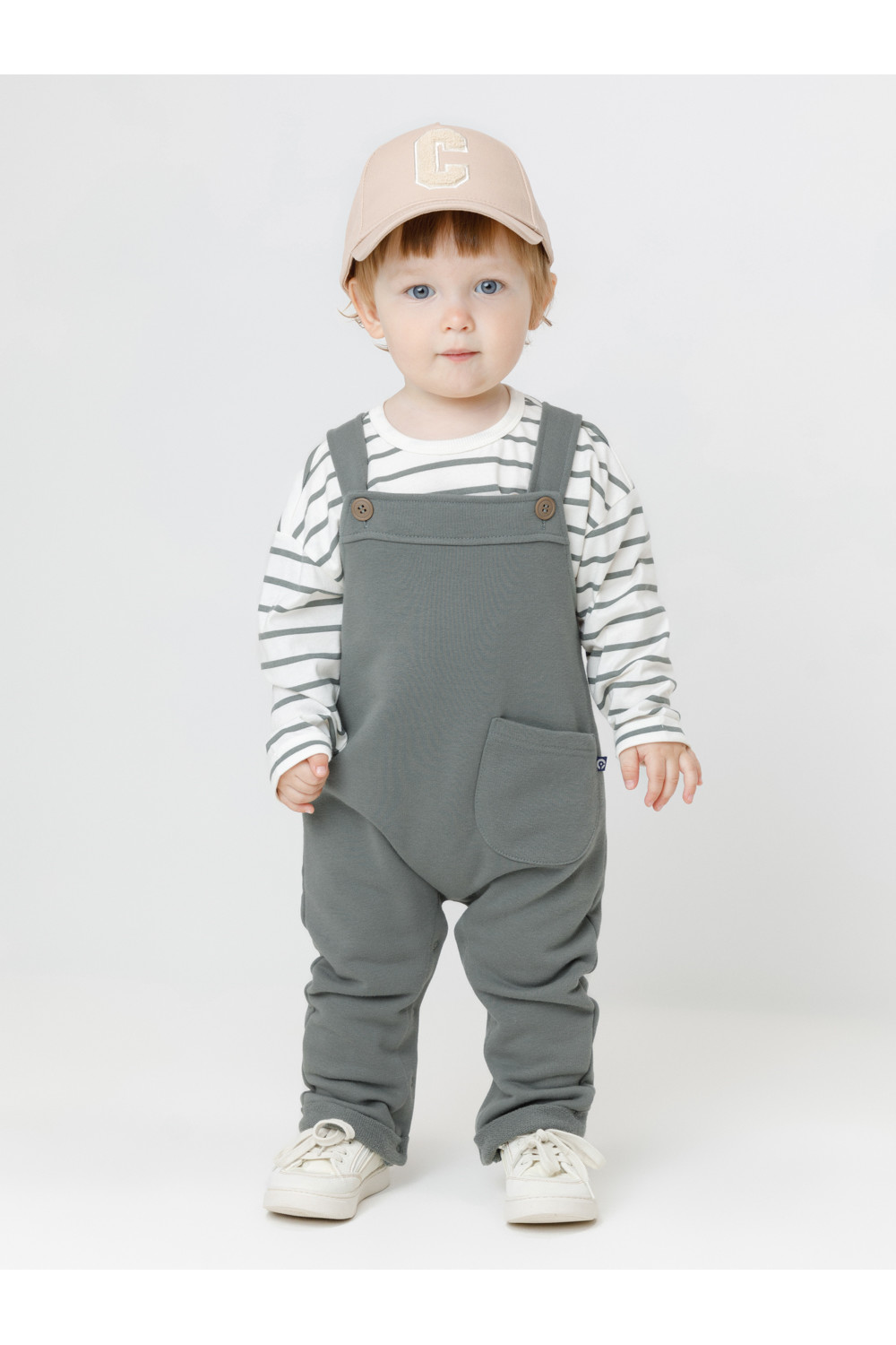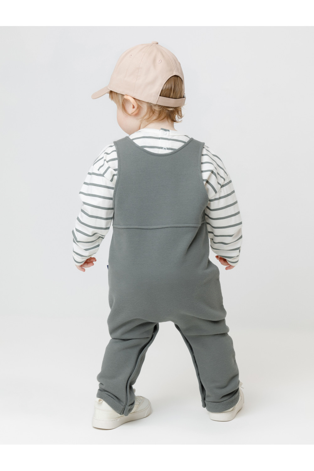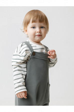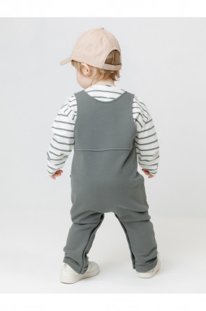Полукомбинезон для мальчика из мягкого петельчатого футера трёхнитки. В составе 80% натурального хлопка и 20% полиэстера, при этом полиэстер ввязан внутрь по особой технологии и не соприкасается с кожей. Модель с лямками на пуговицах и застёжкой на кнопки по шаговому шву. Низ с отворотами. Изделие сохраняет цвет и форму после многократных стирок. Все трикотажные полотна производятся в соответствии с нормами швейцарского сертификата ЭкоТекс.