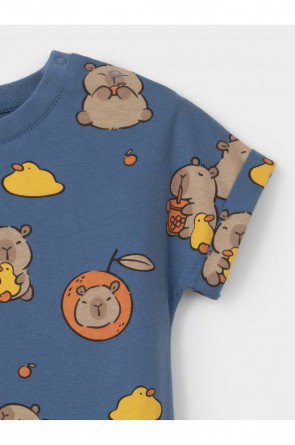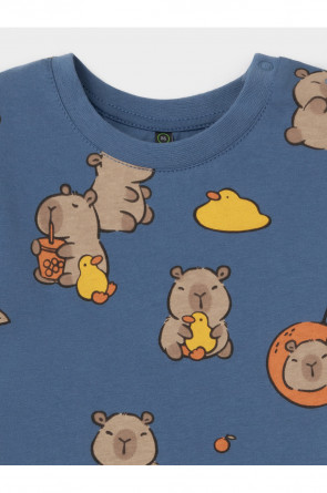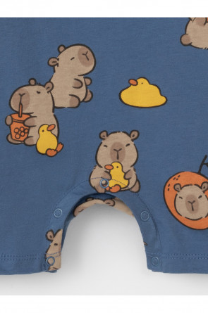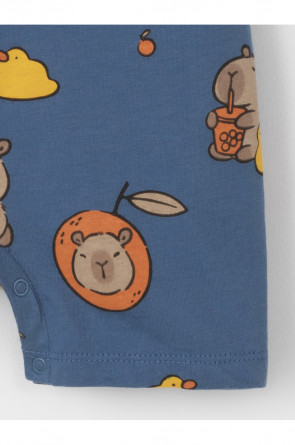 Лёгкий трикотажный песочник для мальчика из высококачественного хлопка. Для удобства при одевании застёгивается на кнопки на плече и по шаговому шву. Оригинальная набивка выполнена из стойких текстильных гипоаллергенных красителей. Изделие сохраняет цвет и форму после многократных стирок.