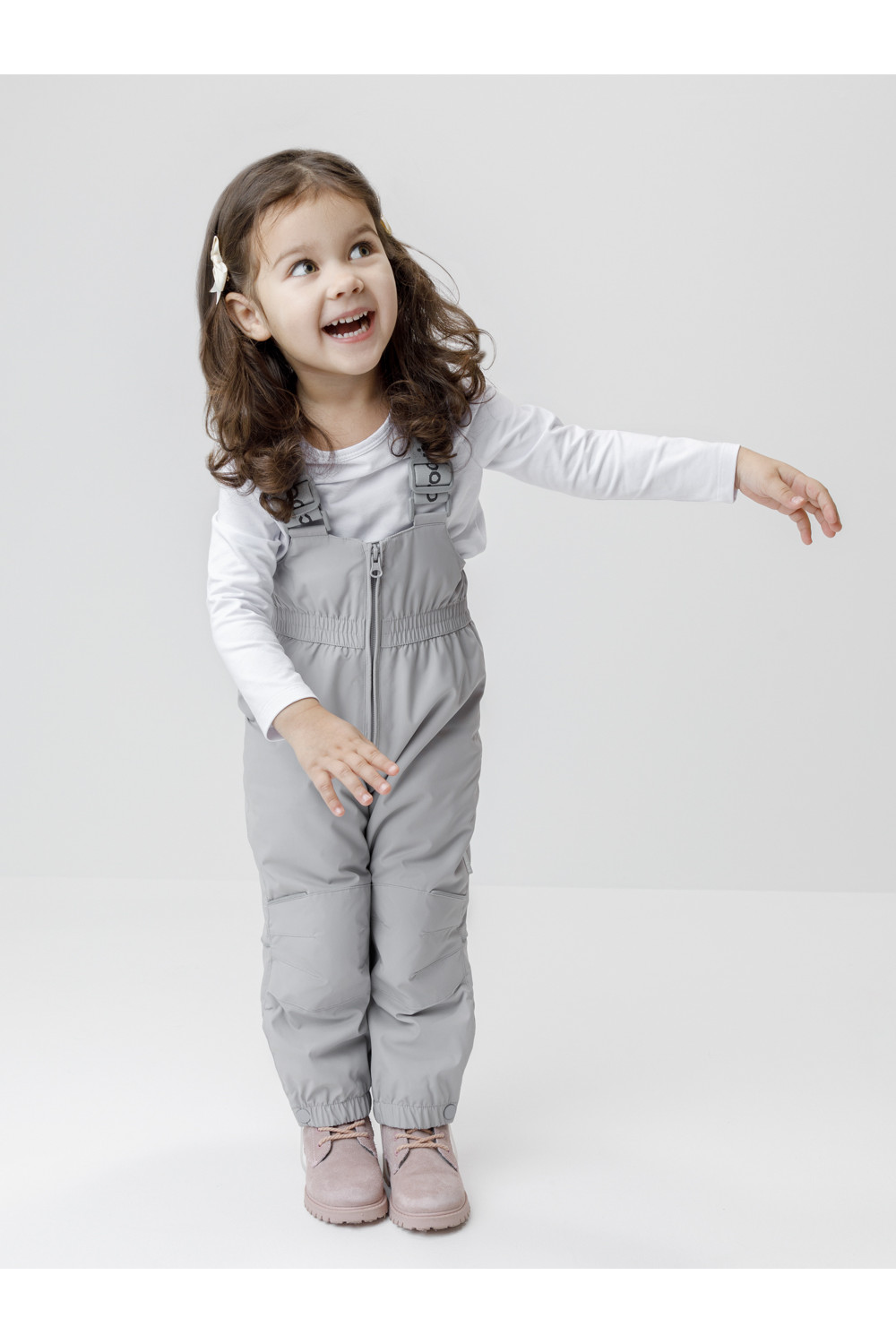 Демисезонный полукомбинезон детский с утеплителем 60 г/м2. Выполнен из мембранной ткани с дополнительной тефлоновой обработкой. Данный вид обработки предохраняет изделие от загрязнения и лучше отводит влагу. Подклад из 100% полиэстера. Эластичные лямки для удобства регулируются по длине. Область коленей дополнительно усилена деталями из основной ткани. Низ на резинке, регулируется по ширине при помощи кнопки. Для фиксации полукомбинезона используются съёмные силиконовые штрипки. Во всех изделиях верхнего ассортимента для безопасности ребёнка предусмотрены светоотражающие элементы.