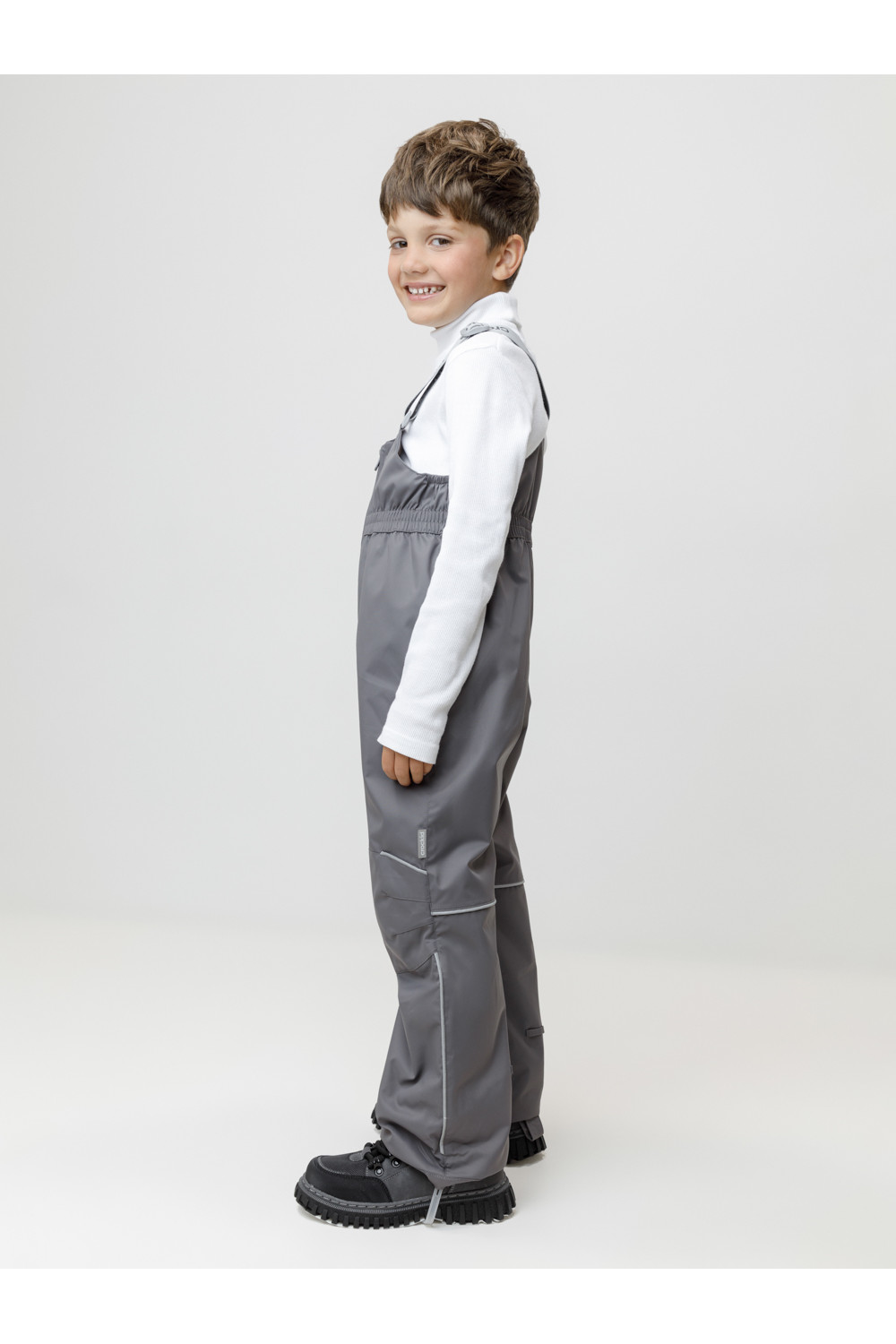 Демисезонный полукомбинезон детский с утеплителем 60 г/м2. Выполнен из мембранной ткани с дополнительной тефлоновой обработкой. Данный вид обработки предохраняет изделие от загрязнения и лучше отводит влагу. Подклад из 100% полиэстера. Эластичные лямки для удобства регулируются по длине. Область коленей дополнительно усилена деталями из основной ткани. Низ регулируется по длине при помощи липучки. Для фиксации полукомбинезона используются съёмные силиконовые штрипки. Во всех изделиях верхнего ассортимента для безопасности ребёнка предусмотрены светоотражающие элементы.