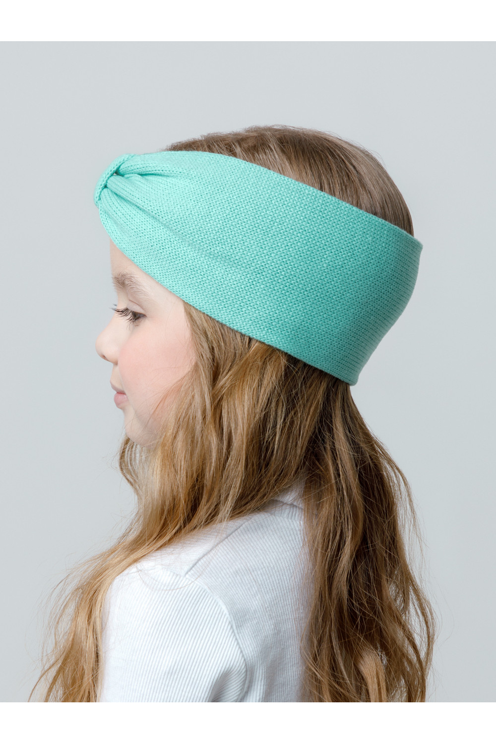 Повязка на голову двойная для девочки. Изготовлена из мягкой гипоаллергенной акриловой пряжи. Изделие хорошо переносит многократные стирки, сохраняя цвет и форму.