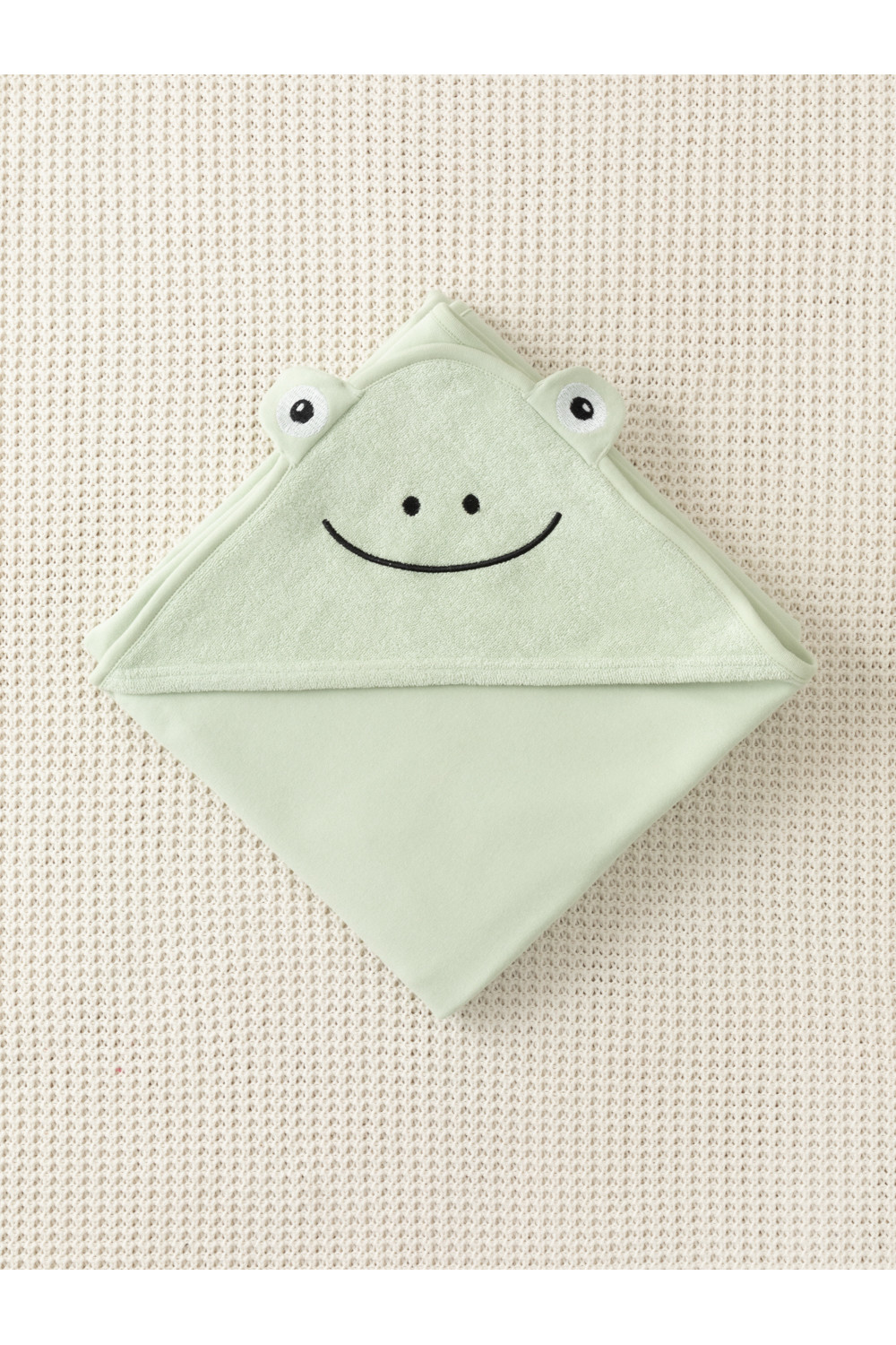Махровое полотенце с уголком для новорождённых. Изготовлено из натурального хлопка. Размер 85*85 см. Все трикотажные полотна производятся в соответствии с нормами Швейцарского сертификата ЭкоТекс.
