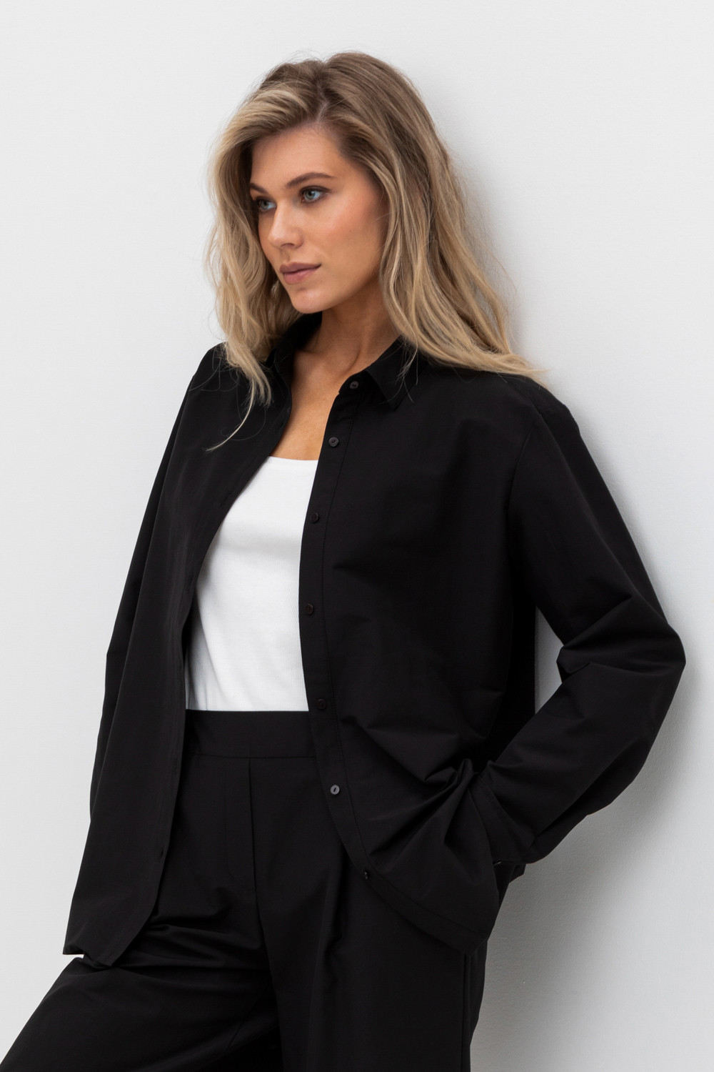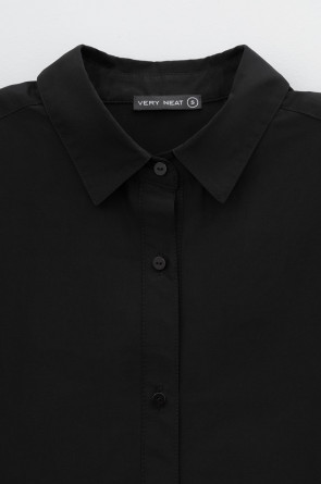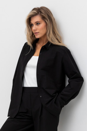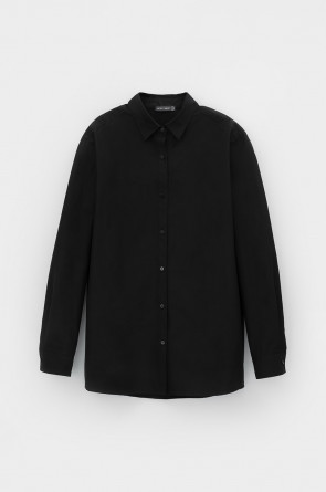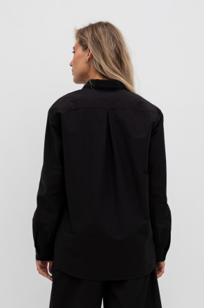 Рубашка свободного кроя из смесового хлопка с добавлением эластана со спущенной линией плеча и длинными рукавами с манжетами на пуговицах.