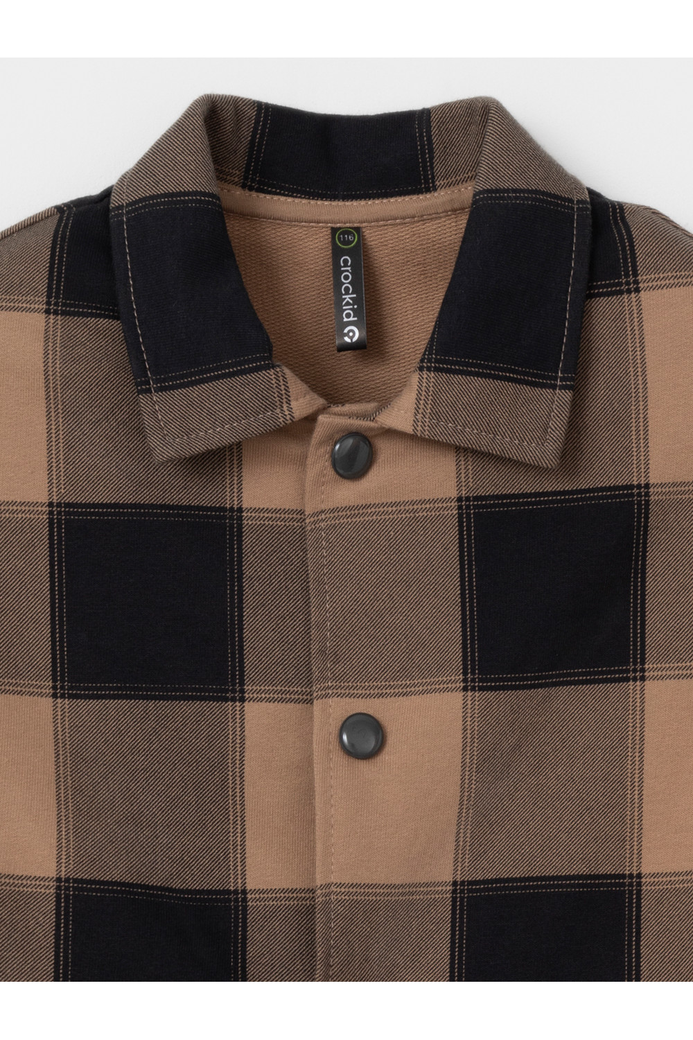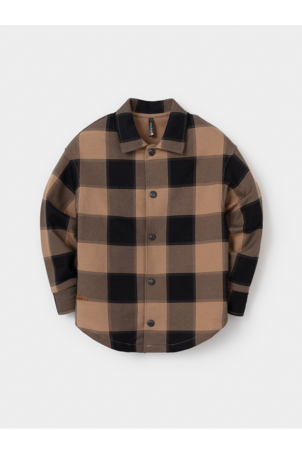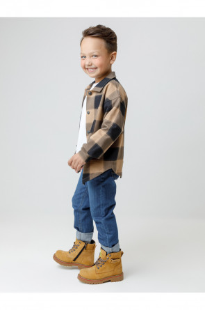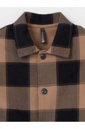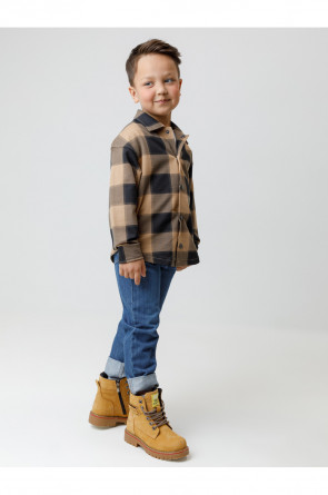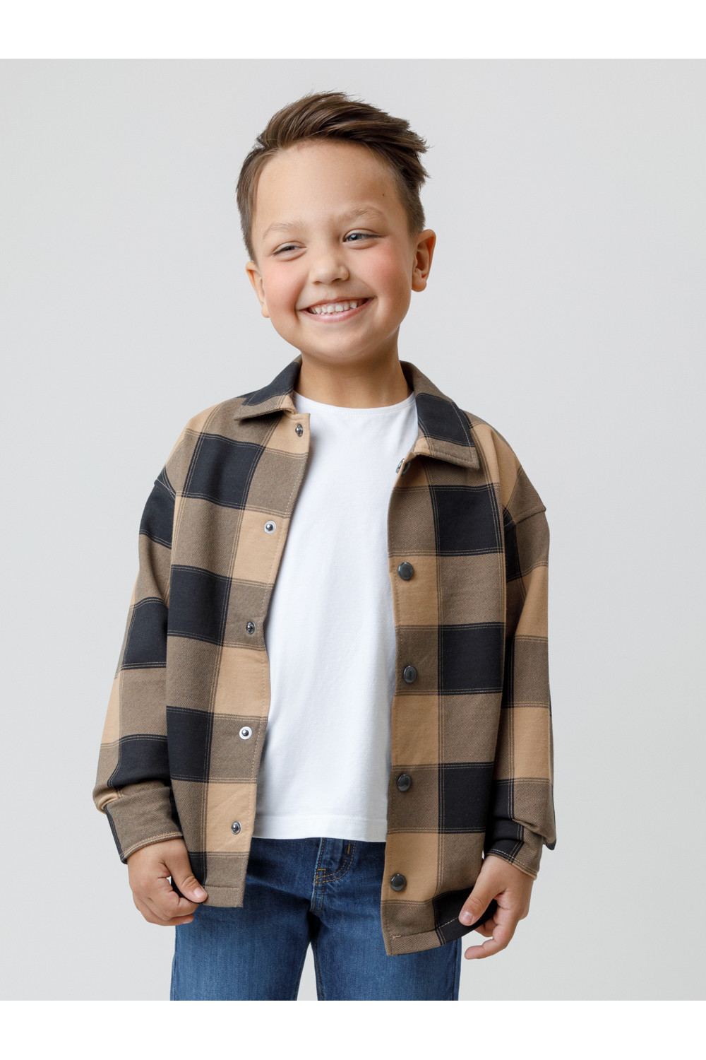 Свободная трикотажная рубашка для мальчика из мягкого петельчатого футера. Застёгивается на кнопки. Модель с закругленным низом и спущенным плечом. Рисунок в клетку выполнен из стойких текстильных гипоаллергенных красителей. Изделие сохраняет цвет и форму после многократных стирок. Все трикотажные полотна производятся в соответствии с нормами швейцарского сертификата ЭкоТекс.