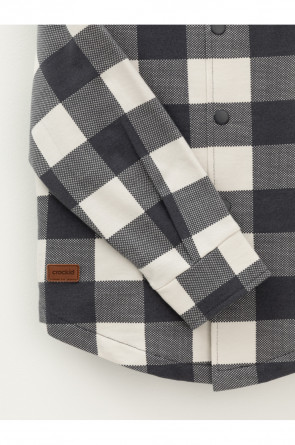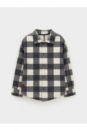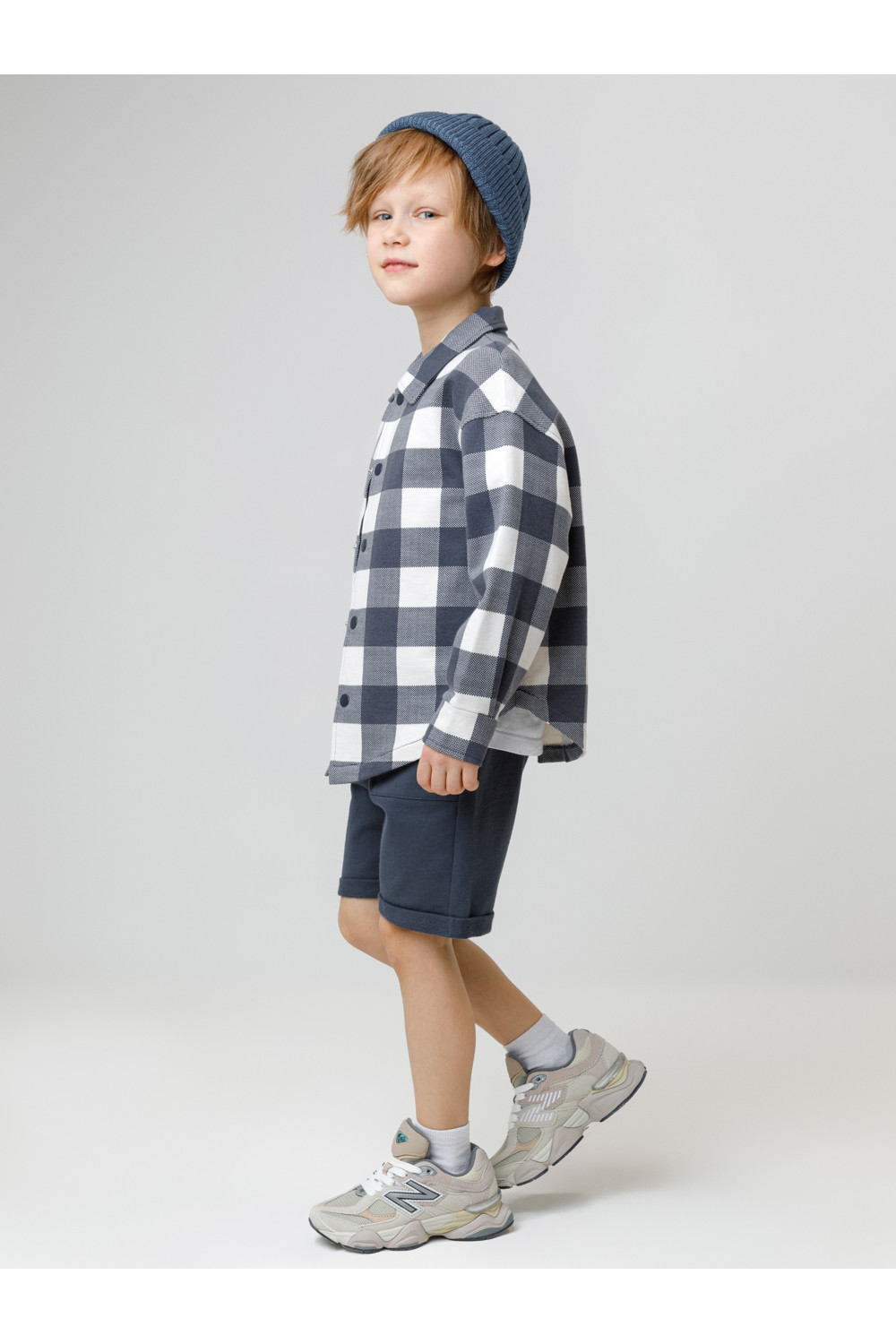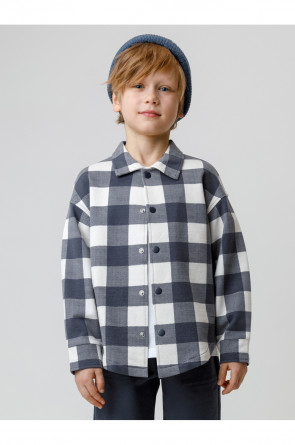 Свободная трикотажная рубашка для мальчика из мягкого петельчатого футера. Застёгивается на кнопки. Модель с закругленным низом и спущенным плечом. Рисунок в клетку выполнен из стойких текстильных гипоаллергенных красителей. Изделие сохраняет цвет и форму после многократных стирок. Все трикотажные полотна производятся в соответствии с нормами швейцарского сертификата ЭкоТекс.