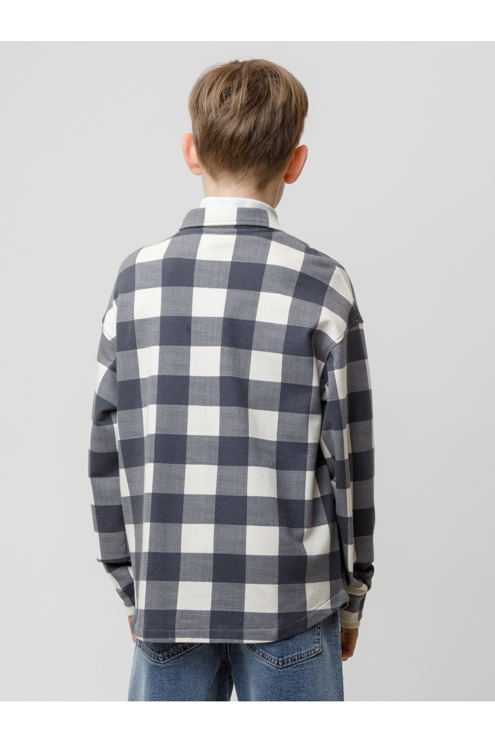 Свободная трикотажная рубашка для мальчика из мягкого петельчатого футера. Застёгивается на кнопки. Модель с закругленным низом и спущенным плечом. Рисунок в клетку выполнен из стойких текстильных гипоаллергенных красителей. Изделие сохраняет цвет и форму после многократных стирок. Все трикотажные полотна производятся в соответствии с нормами швейцарского сертификата ЭкоТекс.
