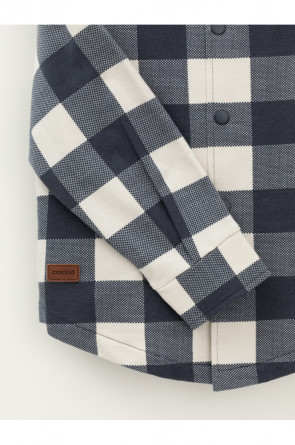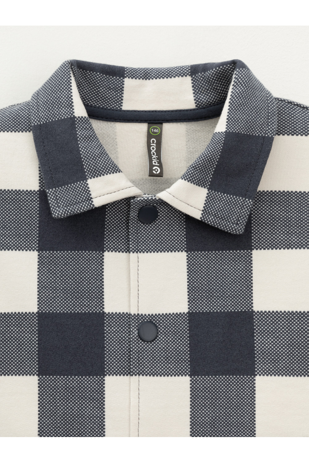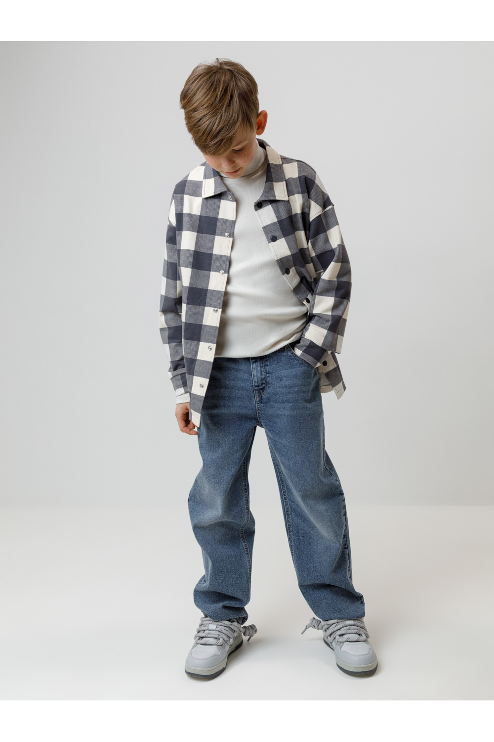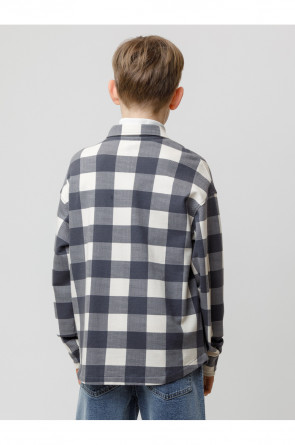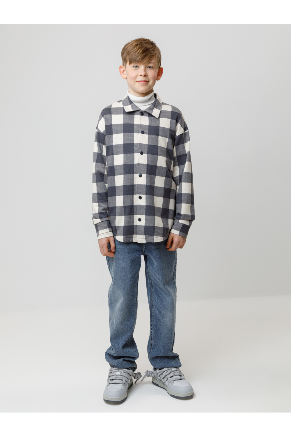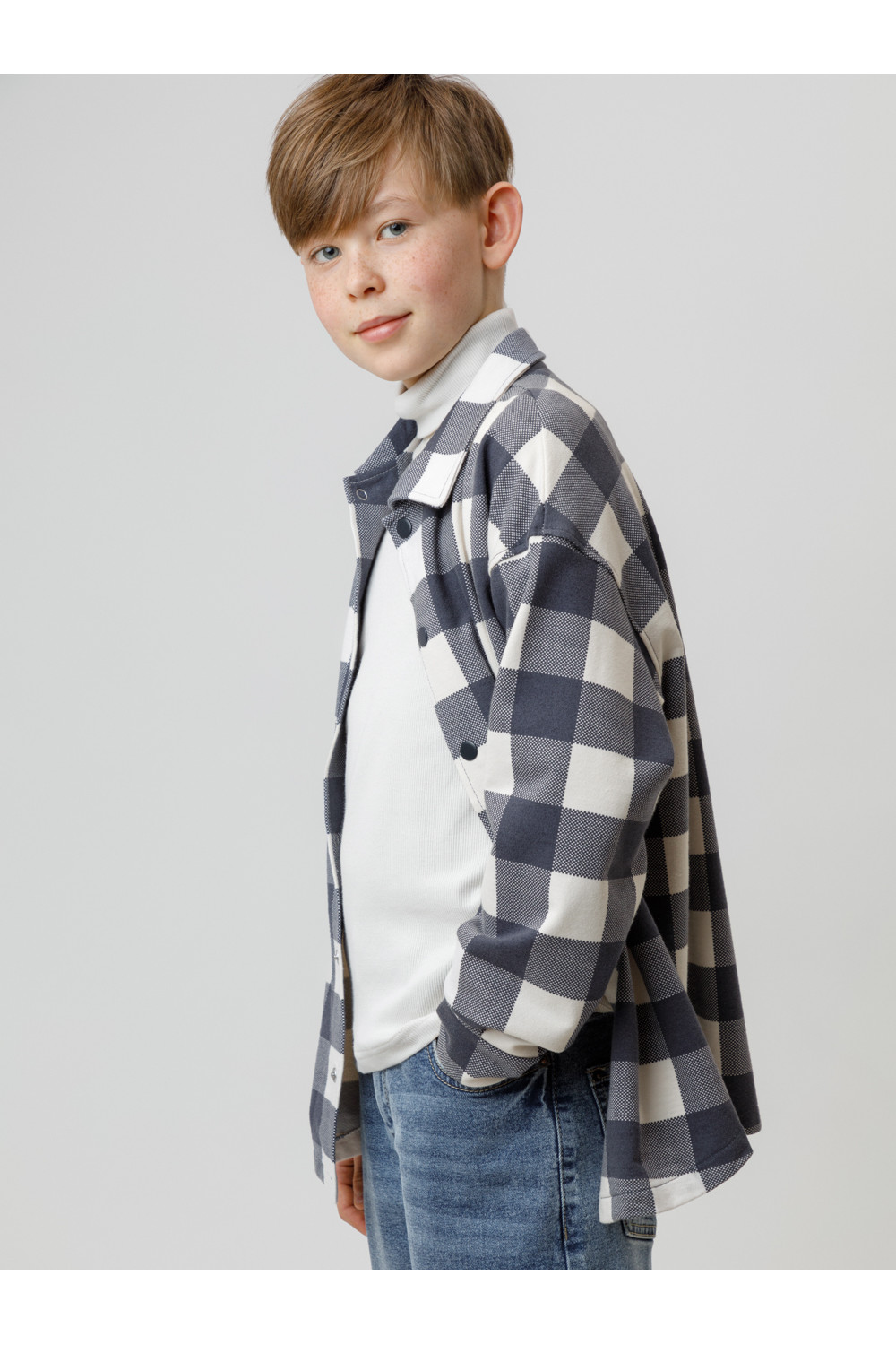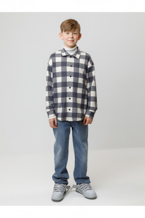 Свободная трикотажная рубашка для мальчика из мягкого петельчатого футера. Застёгивается на кнопки. Модель с закругленным низом и спущенным плечом. Рисунок в клетку выполнен из стойких текстильных гипоаллергенных красителей. Изделие сохраняет цвет и форму после многократных стирок. Все трикотажные полотна производятся в соответствии с нормами швейцарского сертификата ЭкоТекс.