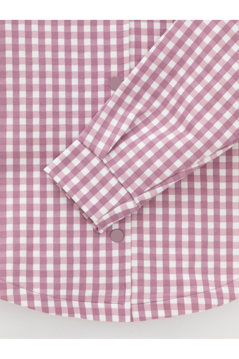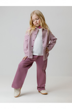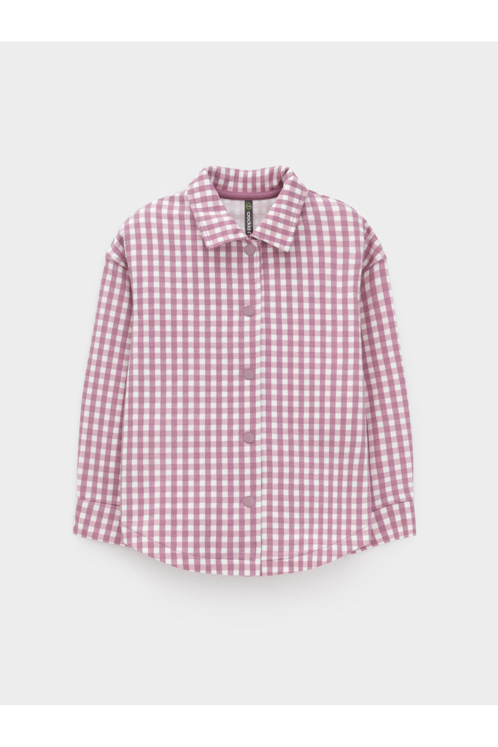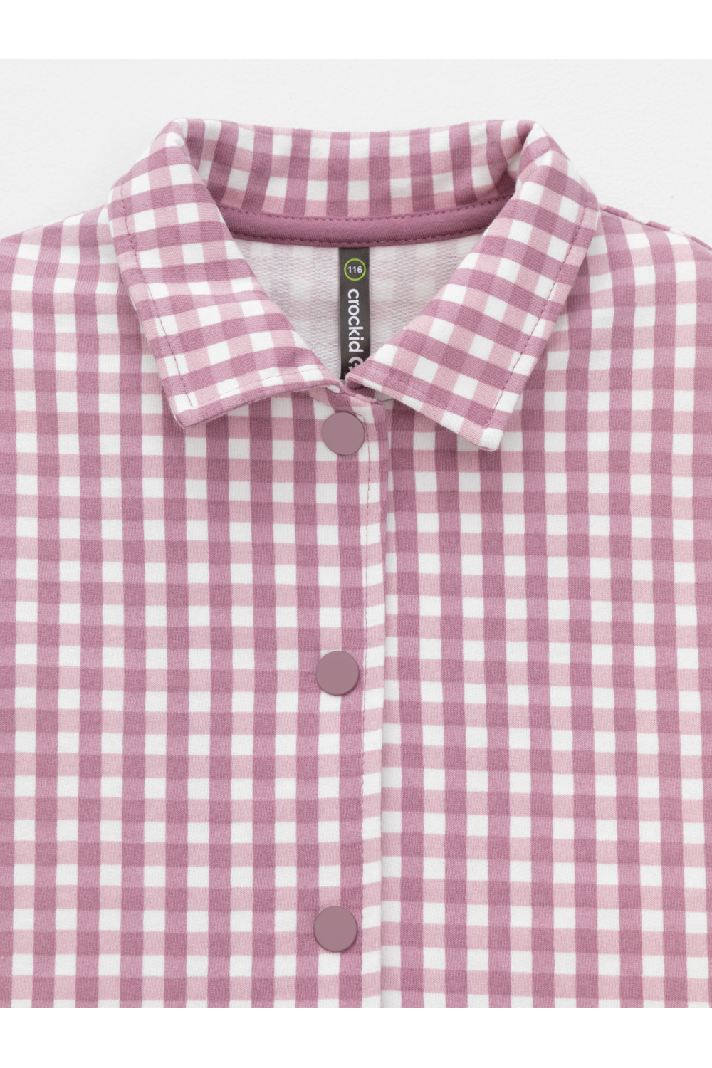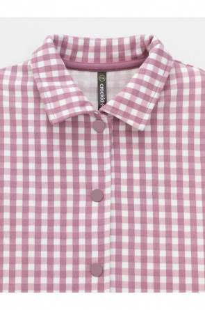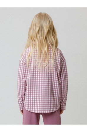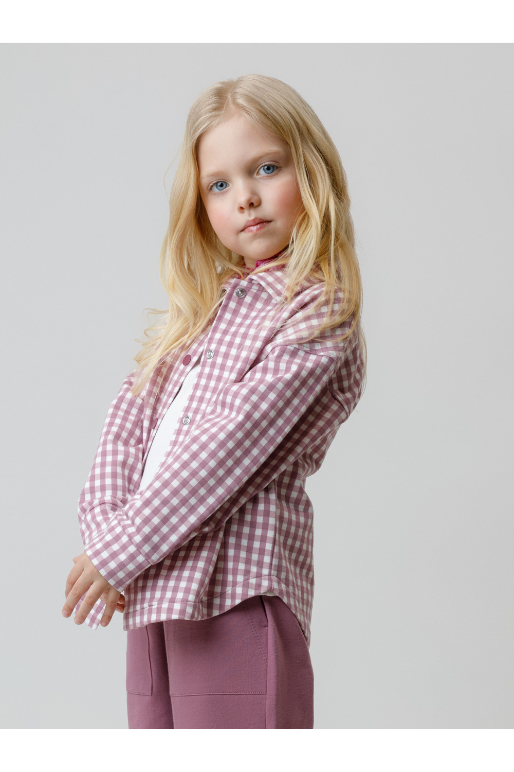 Свободная трикотажная рубашка для девочки из мягкого петельчатого футера. Застёгивается на кнопки. Модель с закругленным низом и спущенным плечом. Рисунок в клетку выполнен из стойких текстильных гипоаллергенных красителей. Изделие сохраняет цвет и форму после многократных стирок. Все трикотажные полотна производятся в соответствии с нормами швейцарского сертификата ЭкоТекс.