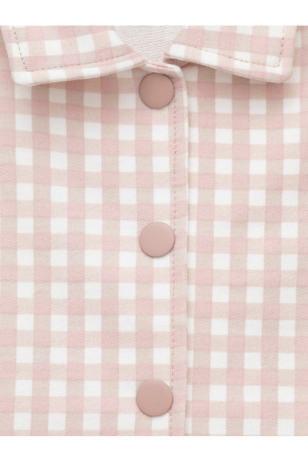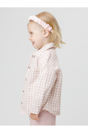Свободная трикотажная рубашка для девочки из мягкого петельчатого футера. Застёгивается на кнопки. Модель с закругленным низом и спущенным плечом. Рисунок в клетку выполнен из стойких текстильных гипоаллергенных красителей. Изделие сохраняет цвет и форму после многократных стирок. Все трикотажные полотна производятся в соответствии с нормами швейцарского сертификата ЭкоТекс.