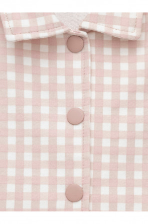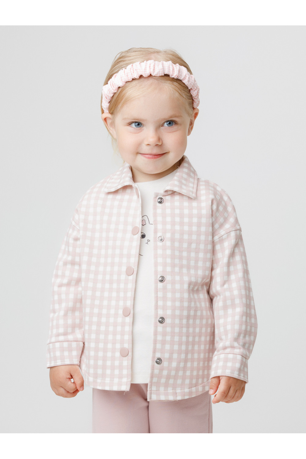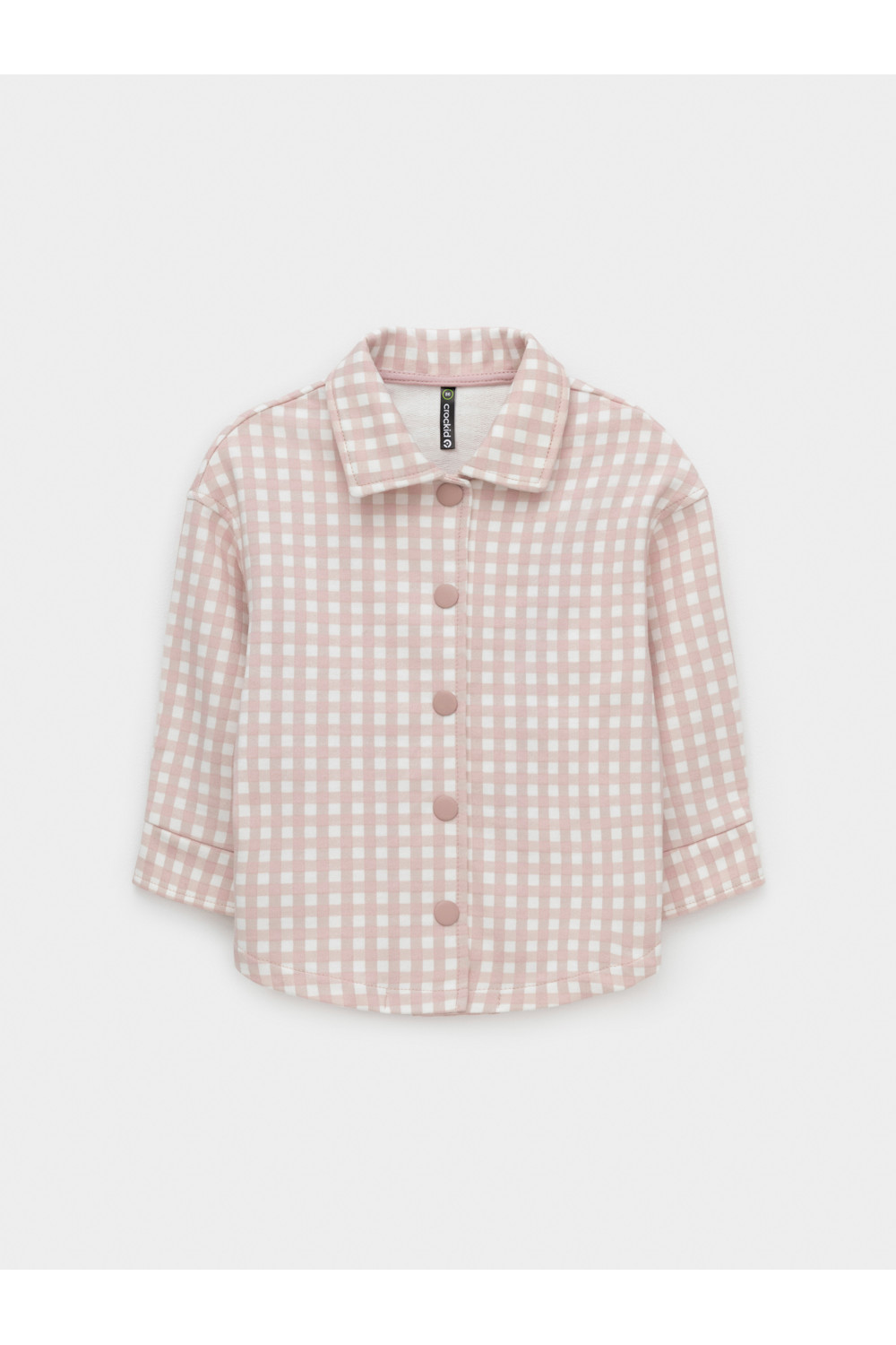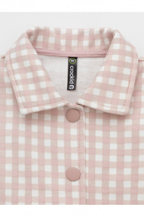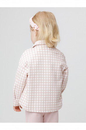 Свободная трикотажная рубашка для девочки из мягкого петельчатого футера. Застёгивается на кнопки. Модель с закругленным низом и спущенным плечом. Рисунок в клетку выполнен из стойких текстильных гипоаллергенных красителей. Изделие сохраняет цвет и форму после многократных стирок. Все трикотажные полотна производятся в соответствии с нормами швейцарского сертификата ЭкоТекс.