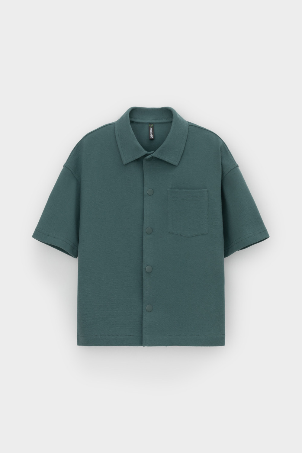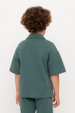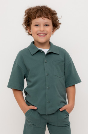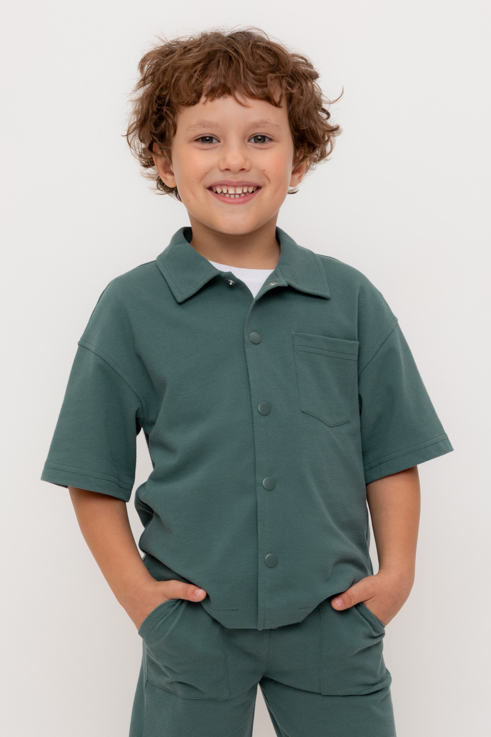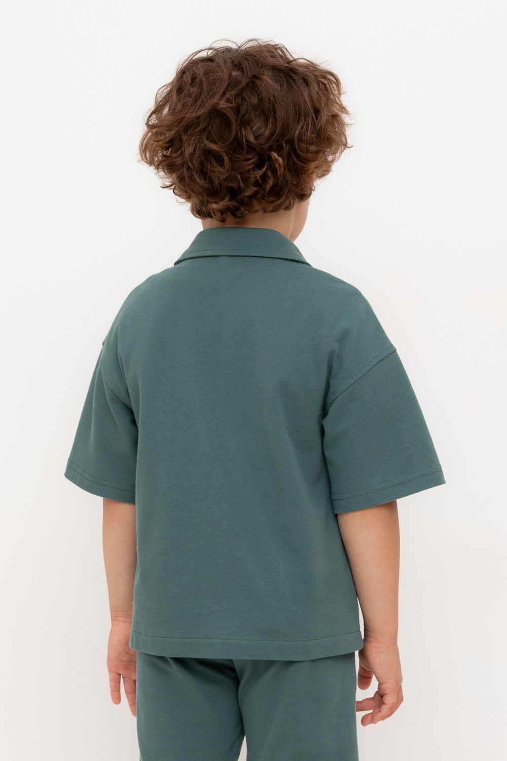 Рубашка для мальчика из мягкого высококачественного трикотажа пике. Застёгивается на кнопки. Модель со спущенным плечом.