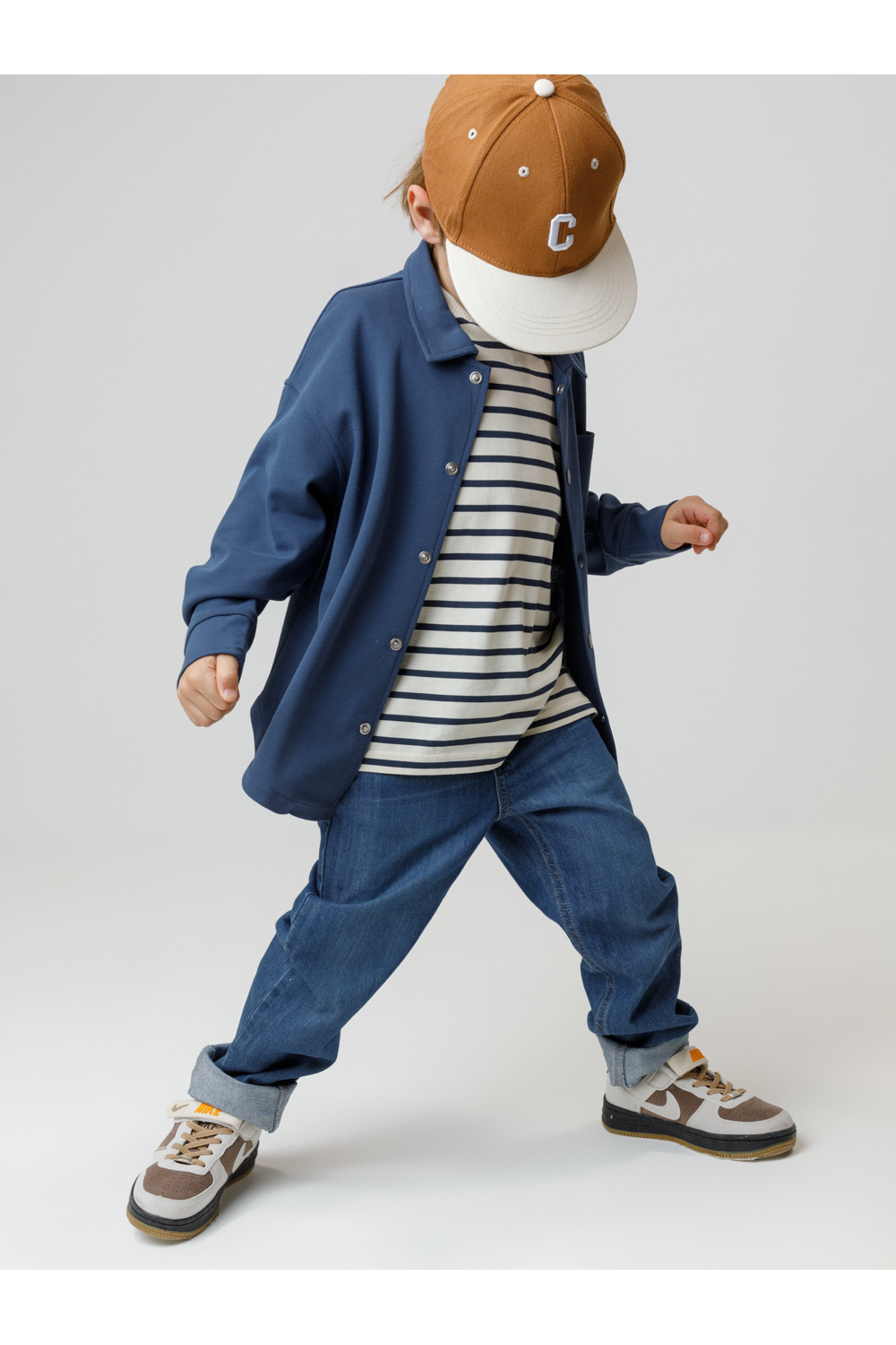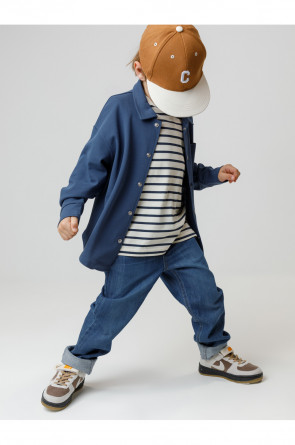 Свободная трикотажная рубашка для мальчика из мягкого трикотажа пике. Застёгивается на кнопки. Модель с закругленным низом и спущенным плечом. Все трикотажные полотна производятся в соответствии с нормами швейцарского сертификата ЭкоТекс.