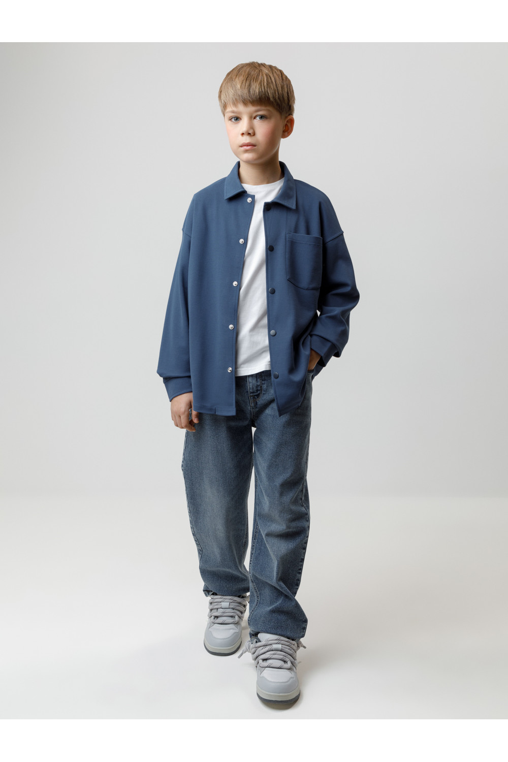 Свободная трикотажная рубашка для мальчика из мягкого трикотажа пике. Застёгивается на кнопки. Модель с закругленным низом и спущенным плечом. Все трикотажные полотна производятся в соответствии с нормами швейцарского сертификата ЭкоТекс.