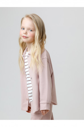 Рубашка свободного кроя для девочки из мягкого трикотажа селаник с peach эффектом.Peach эффект достигается с помощью технологии обработки полотна, при которой на его поверхности создаётся лёгкий ворс, напоминающий нежную текстуру кожи персика. Модель с закруглённым низом и спущенным плечом. Застёгивается на пуговицы. Изделие сохраняет цвет и форму после многократных стирок. Все трикотажные полотна производятся в соответствии с нормами швейцарского сертификата ЭкоТекс.