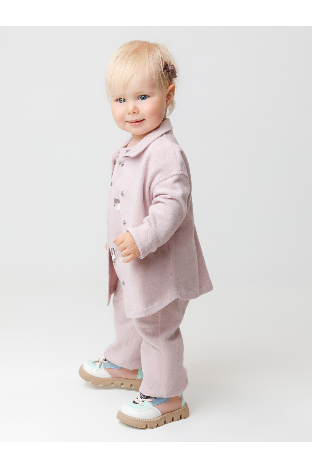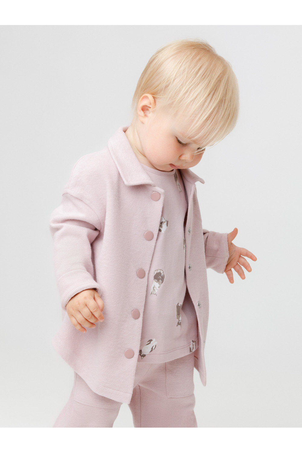 Рубашка свободного кроя для девочки из мягкого трикотажа селаник с peach эффектом. Peach эффект достигается с помощью технологии обработки полотна, при которой на его поверхности создаётся лёгкий ворс, напоминающий нежную текстуру кожи персика. Модель с закруглённым низом и спущенным плечом. Застёгивается на пуговицы. Изделие сохраняет цвет и форму после многократных стирок. Все трикотажные полотна производятся в соответствии с нормами швейцарского сертификата ЭкоТекс.