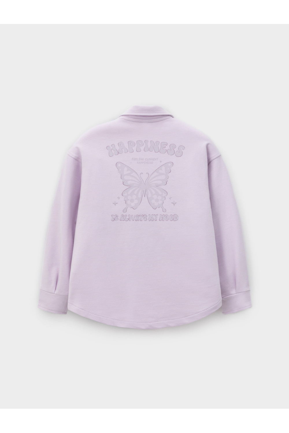 Свободная трикотажная рубашка для девочки из мягкого петельчатого футера. Застёгивается на кнопки. Модель с закруглённым низом и спущенным плечом. Принт на спинке выполнен из стойких текстильных гипоаллергенных красителей. Изделие сохраняет цвет и форму после многократных стирок. Все трикотажные полотна производятся в соответствии с нормами швейцарского сертификата ЭкоТекс.