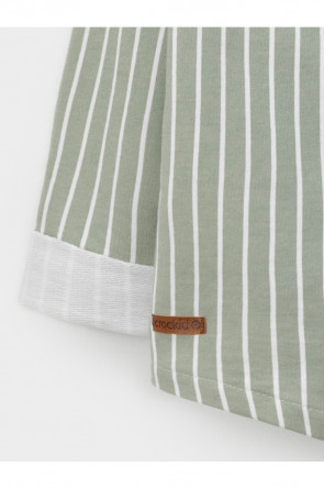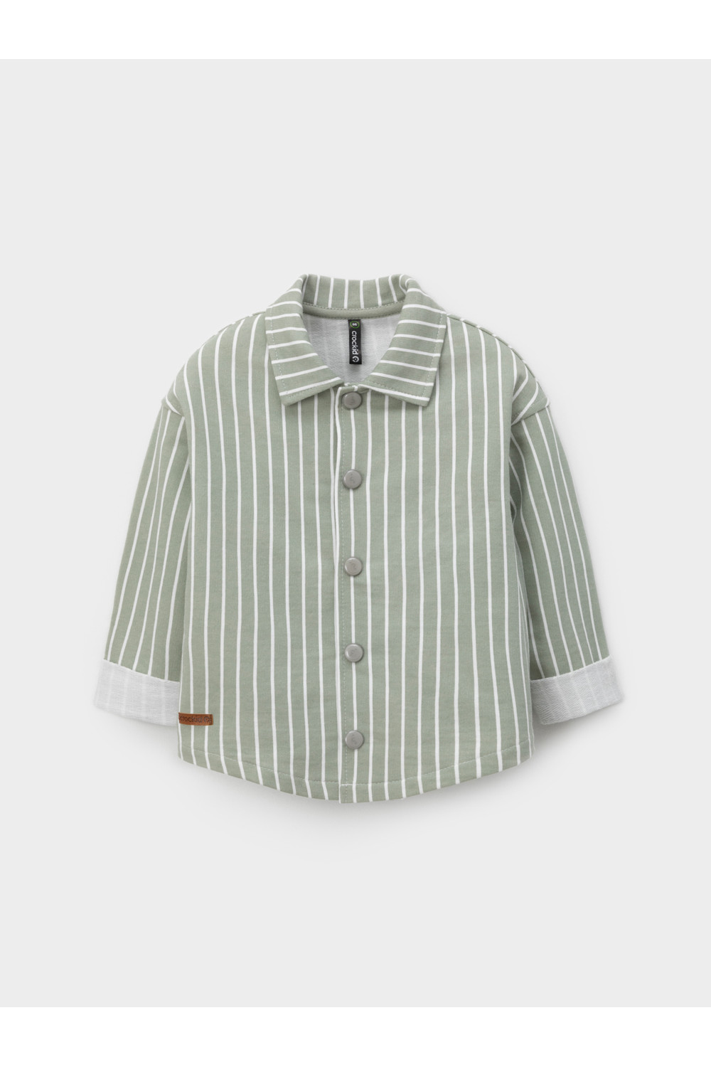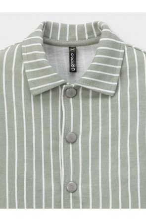 Свободная трикотажная рубашка для мальчика из мягкого петельчатого футера. Застёгивается на кнопки. Модель с закруглённым низом и спущенным плечом. Изделие сохраняет цвет и форму после многократных стирок. Все трикотажные полотна производятся в соответствии с нормами швейцарского сертификата ЭкоТекс.