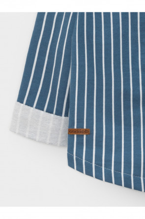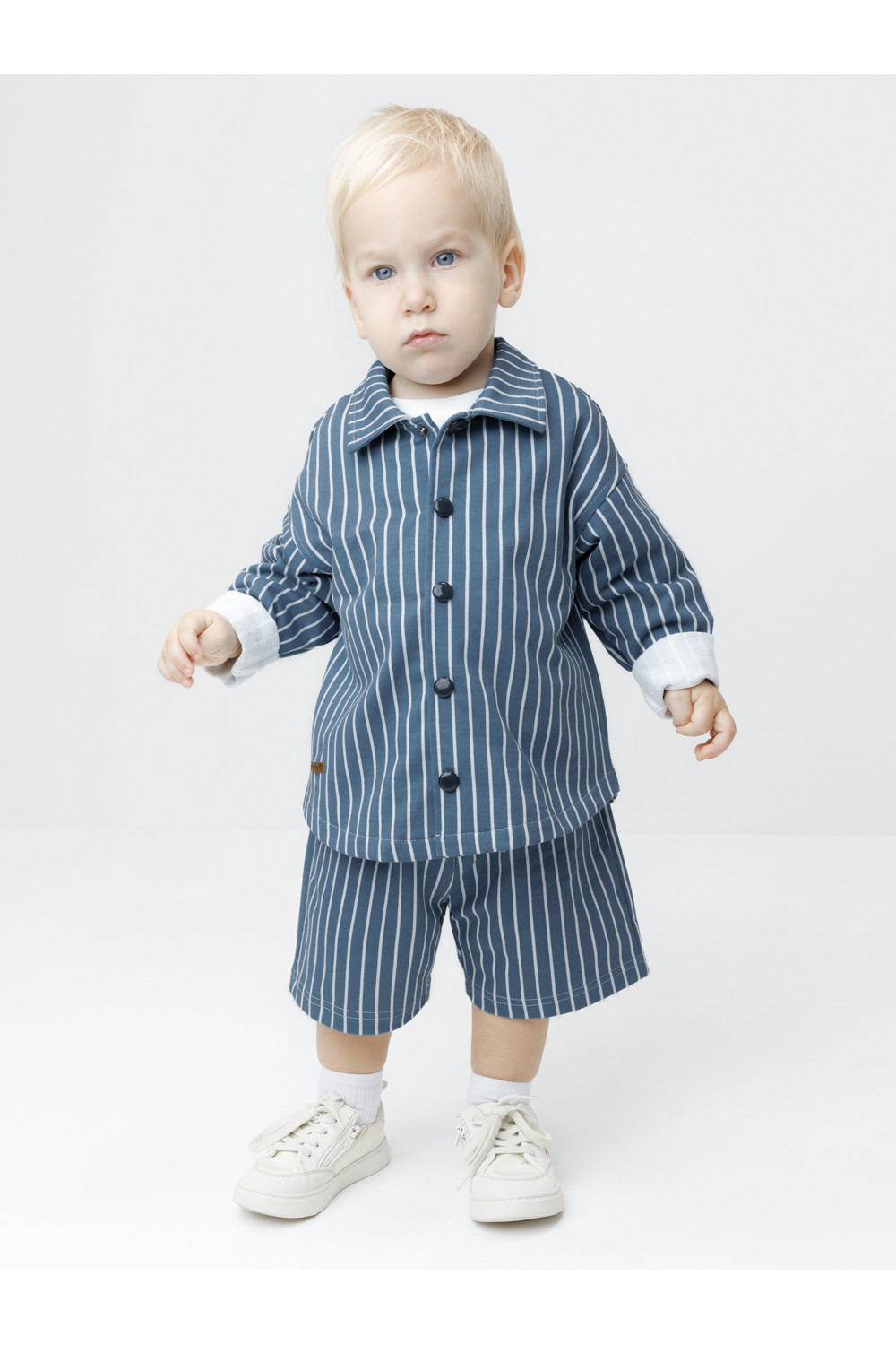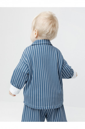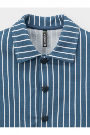 Свободная трикотажная рубашка для мальчика из мягкого петельчатого футера. Застёгивается на кнопки. Модель с закруглённым низом и спущенным плечом. Изделие сохраняет цвет и форму после многократных стирок. Все трикотажные полотна производятся в соответствии с нормами швейцарского сертификата ЭкоТекс.