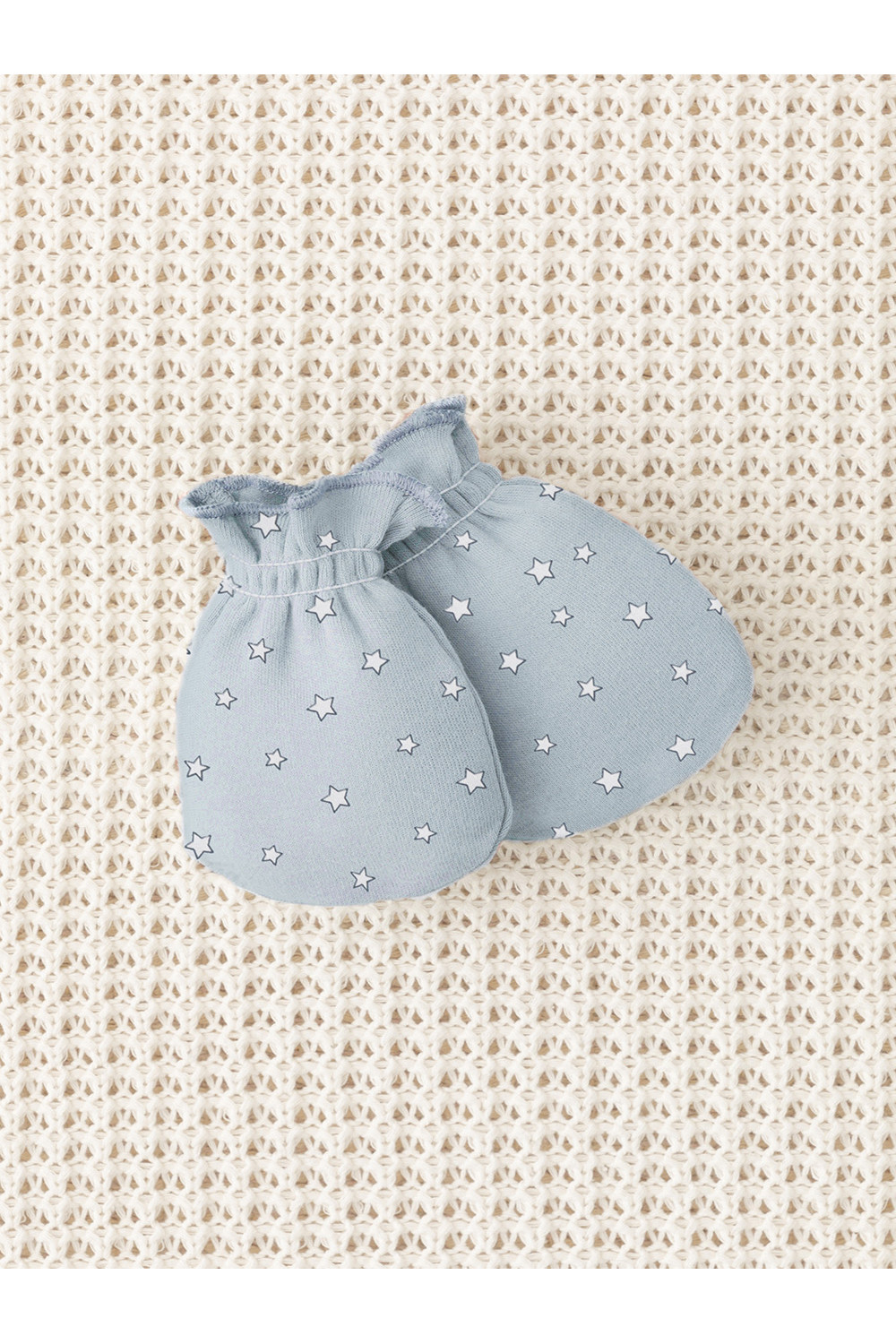 Варежки-антицарапки для новорождённых из мягкого эластичного трикотажа интерлок, произведённого из натурального хлопка. Изделие фиксируется на руке с помощью мягкой резинки. Все трикотажные полотна производятся в соответствии с нормами швейцарского сертификата ЭкоТекс.