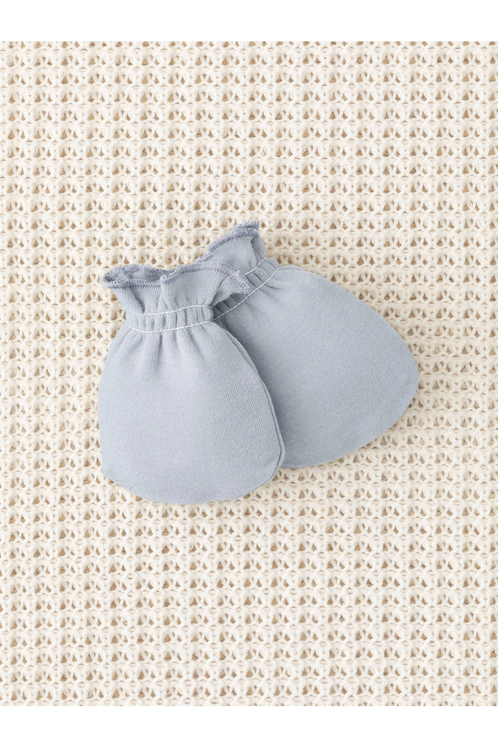 Варежки-антицарапки для новорождённых из мягкого эластичного трикотажа интерлок, произведённого из натурального хлопка. Изделие фиксируется на руке с помощью мягкой резинки. Все трикотажные полотна производятся в соответствии с нормами швейцарского сертификата ЭкоТекс.