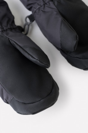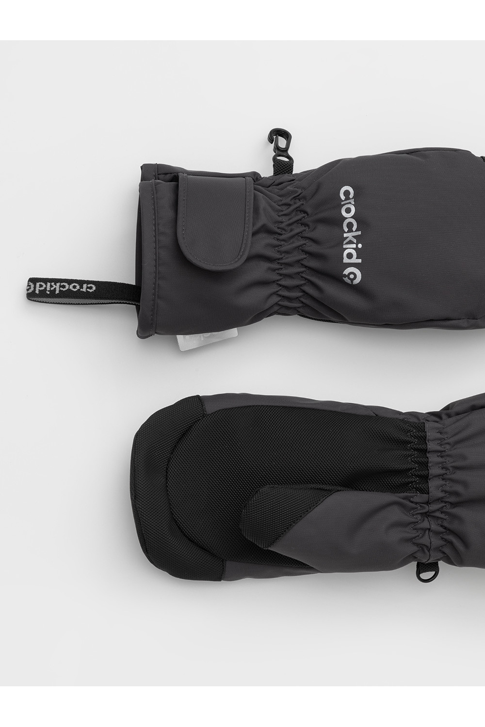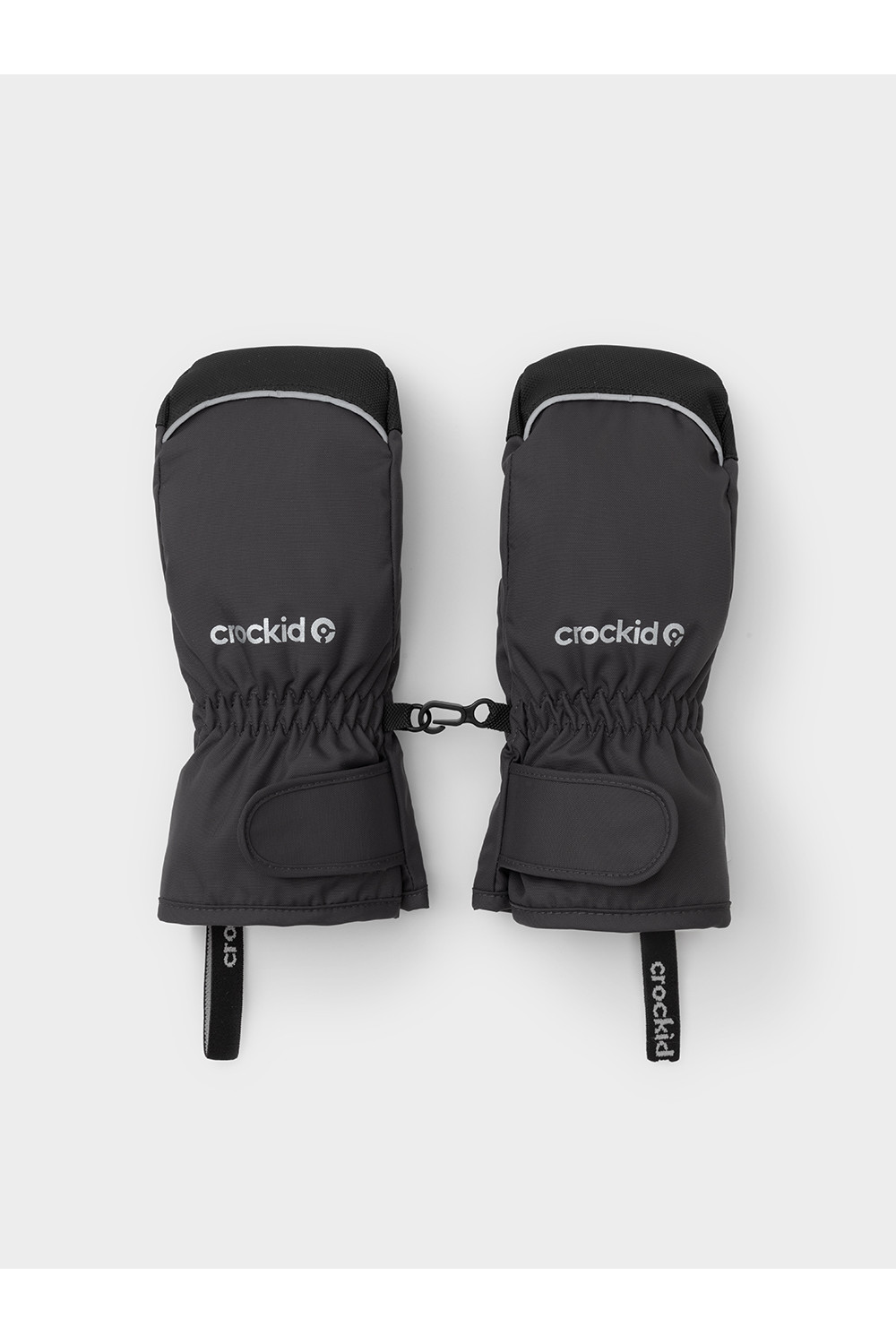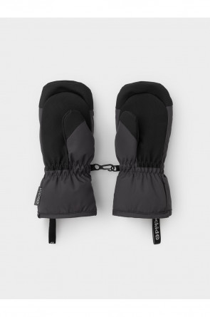 Детские утеплённые рукавицы из однотонной мембранной ткани со вставками из искусственной кожи. Удлинённые манжеты на молнии. Мягкий подклад из флиса. Пластиковый карабин для скрепления рукавиц между собой. Светоотражающие элементы.