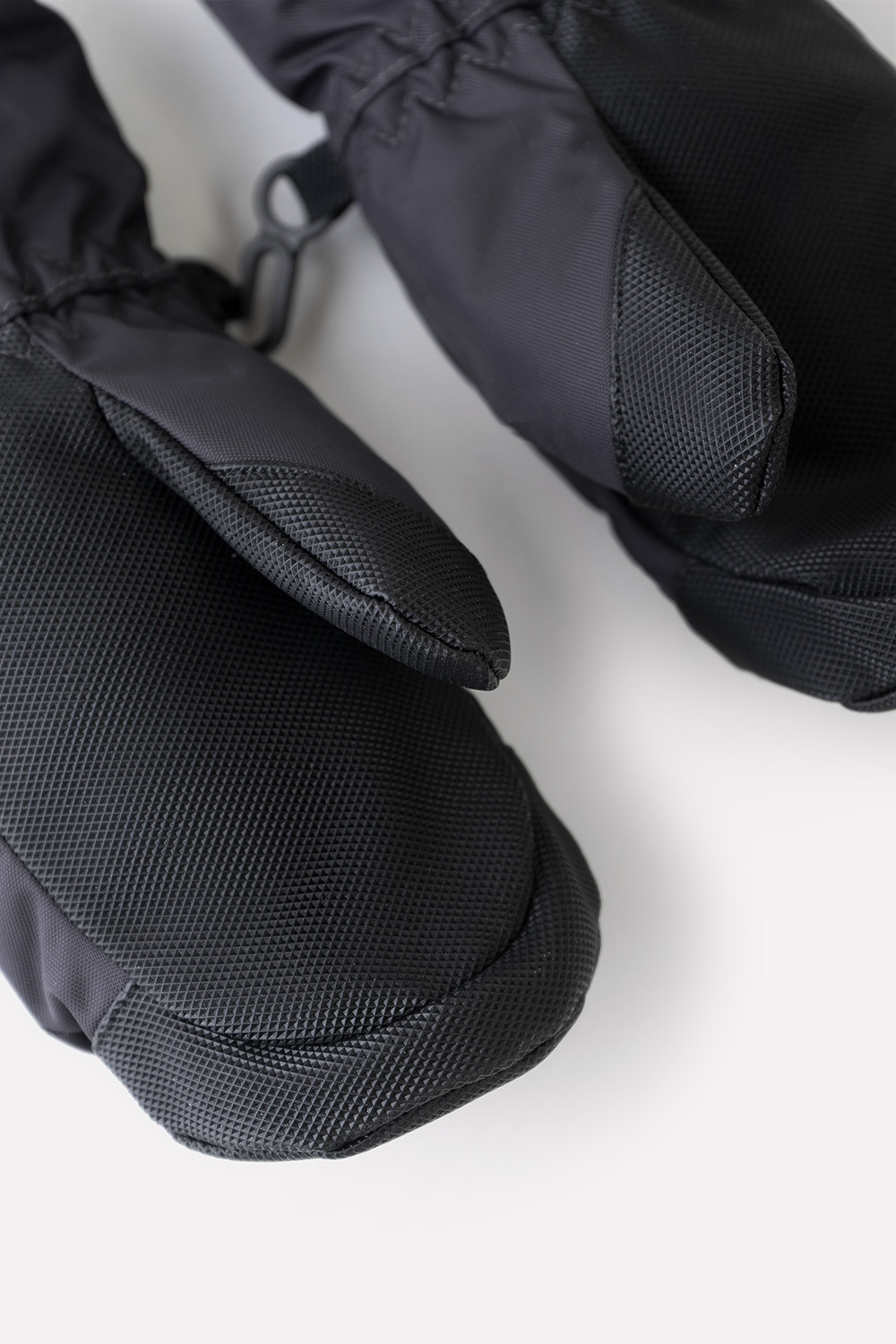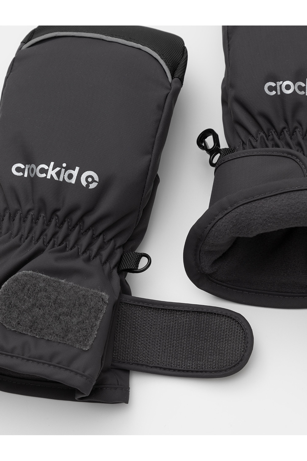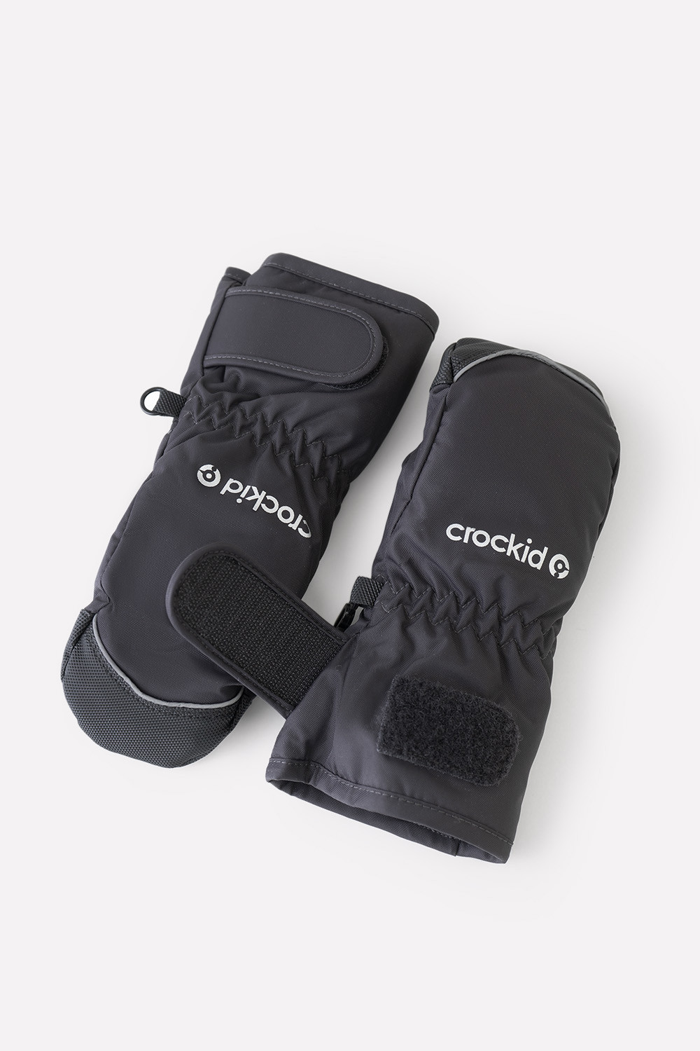 Детские утеплённые рукавицы из однотонной мембранной ткани со вставками из искусственной кожи. Удлинённые манжеты на молнии. Мягкий подклад из флиса. Пластиковый карабин для скрепления рукавиц между собой. Светоотражающие элементы.