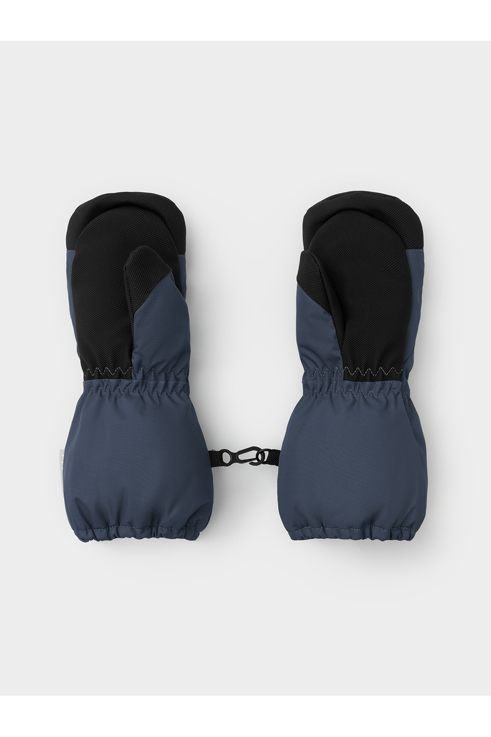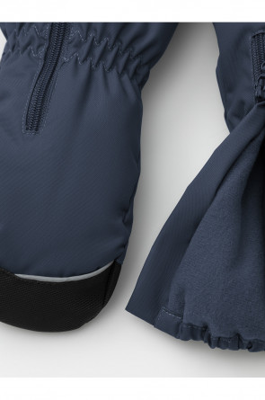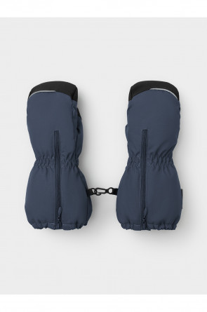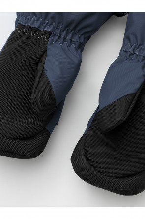 Детские утеплённые рукавицы из однотонной мембранной ткани со вставками из искусственной кожи. Удлинённые манжеты на молнии. Мягкий подклад из флиса. Пластиковый карабин для скрепления рукавиц между собой. Светоотражающие элементы.
