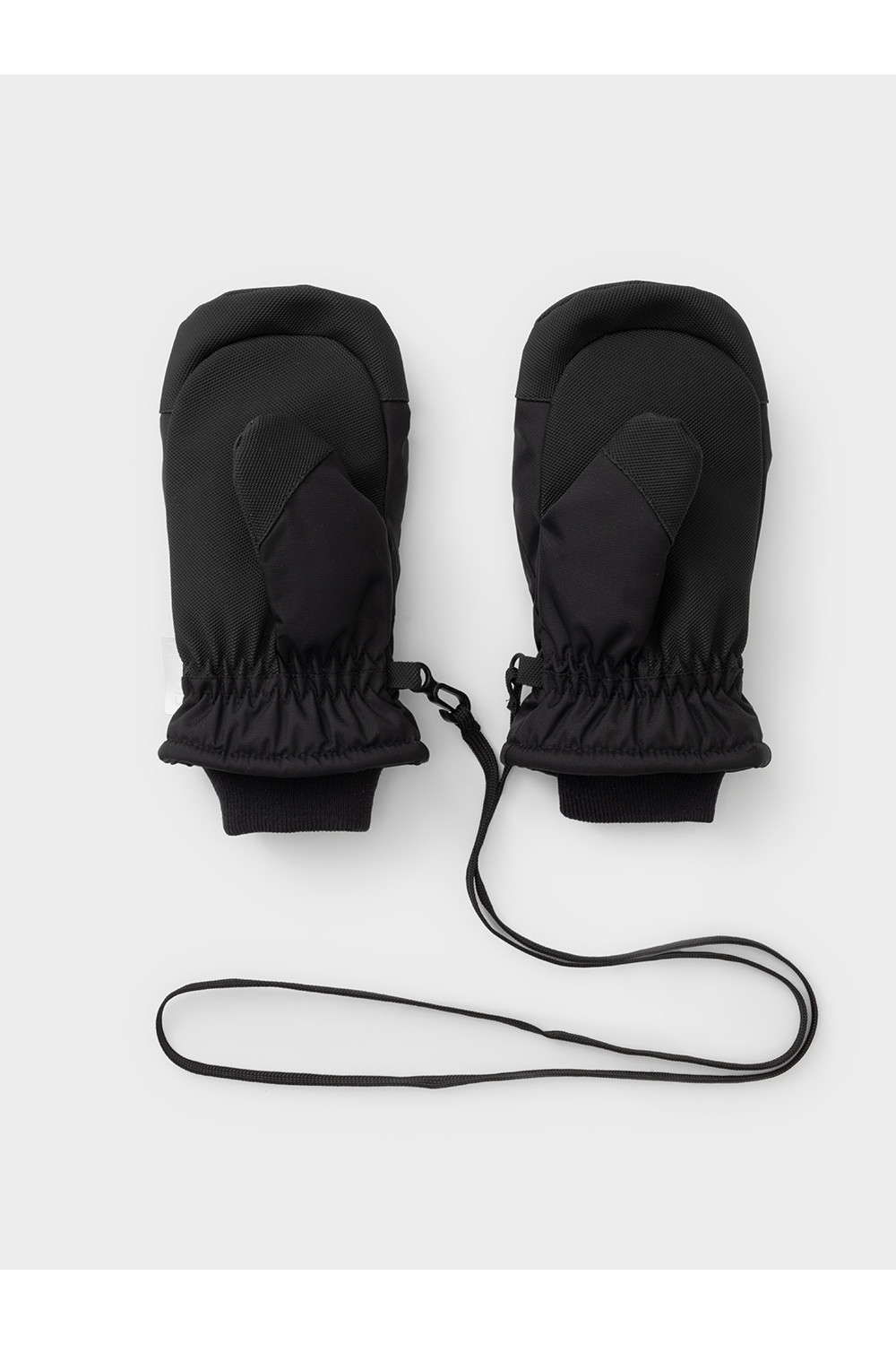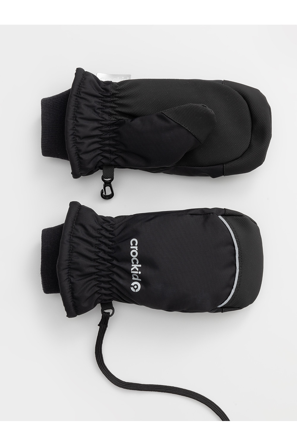 Утеплённые детские рукавицы из мембранной ткани со вставками из искусственной кожи. Эластичная внутренняя манжета из мягкого материала плотно прилегает к запястью и надёжно защищает руки от ветра и снега. Внутри подклад из флиса. Пластиковый карабин и шнур скрепляют рукавицы между собой. Светоотражающие элементы служат для дополнительной безопасности в тёмное время суток.